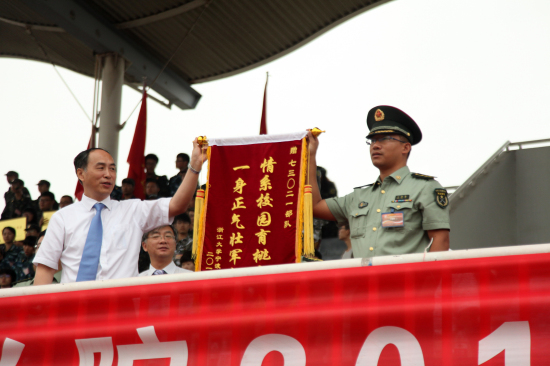 浙大军训师副政委邬小撑宣读了嘉奖令,宣布先进集体及优秀个人名单,主席台领导为获奖的先进集体颁奖并表示祝贺。学校党委书记费英勤向承训部队赠送了锦旗。参训学员代表、十五连张玲同学代表全体参训学员发言。