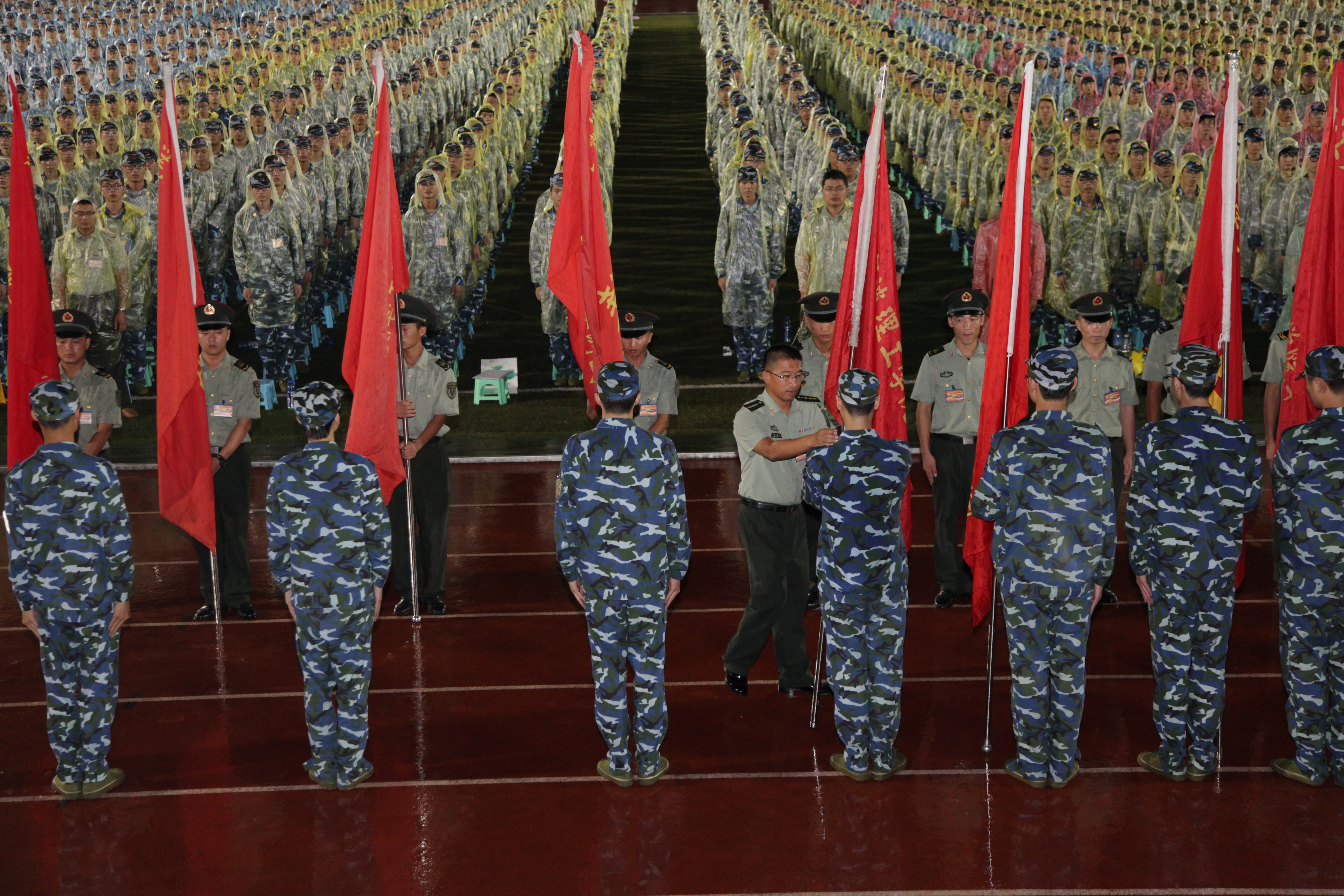 今年我校有近3000名学生参加军训,共设置25个连、71个排,军训为期12天,主要进行队形、队列、方阵等军事技能训练。
