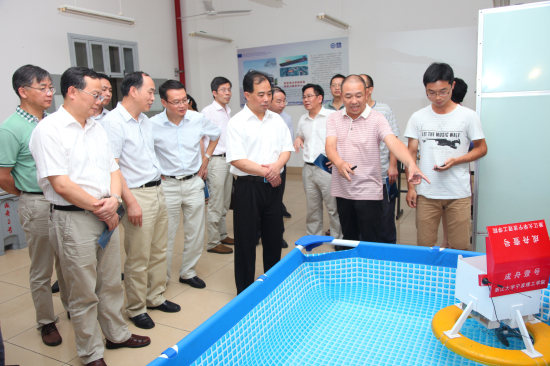 8月8日上午,宁波市委副书记、代市长卢子跃,副市长张明华来到浙江大学宁波理工学院考察调研。宁波市政府秘书长王建社,副秘书长张乐鸣,市府办副主任李万春,市教育局局长沈剑光,副局长胡赤弟,浙江大学宁波理工学院党委书记费英勤,副院长俞春鸣、郑堤等陪同考察。