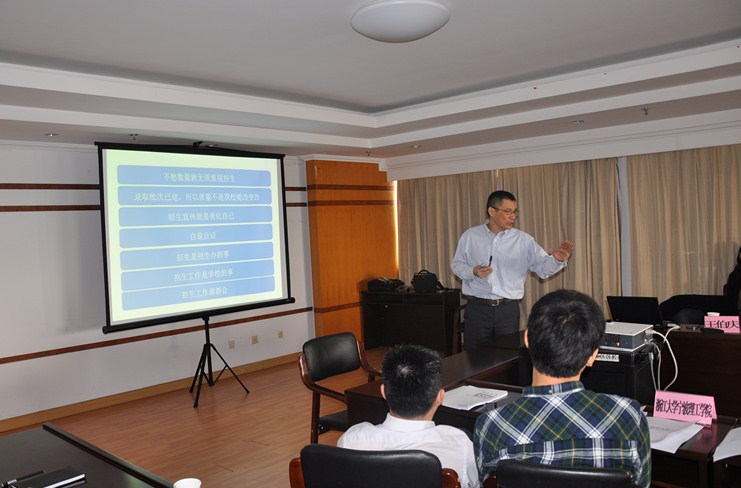 4月17日,被誉为“中国最专业的教育数据咨询公司”——麦可思数据有限公司总裁王伯庆博士应邀来到浙江大学宁波理工学院作了一场招生战略设计的讲座。在甬高校招办主任以及浙江大学宁波理工学院各学院招生负责人参加了此次讲座。