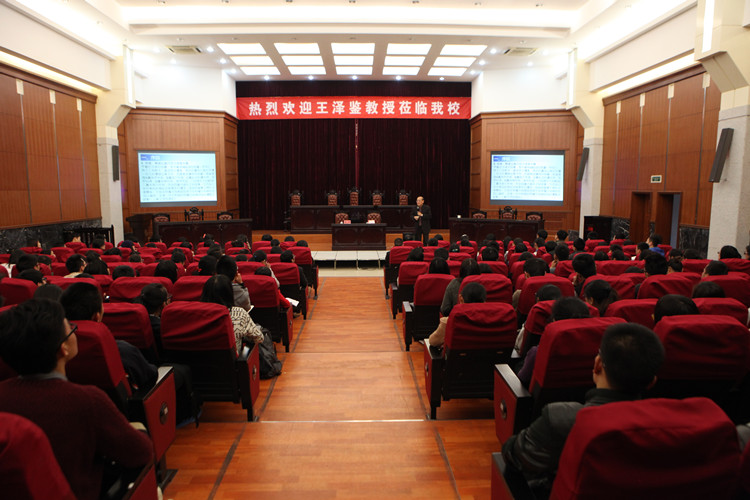 讲座之前,学校党委书记费英勤在学校贵宾室亲切会见了王泽鉴教授,向他介绍了我校的基本情况和办学特色。王泽鉴教授对我校在短短十余年间取得的成绩表示十分钦佩,希望加强两岸高校之间的合作交流,相信两岸的学校、教师、学生都能从中受益。