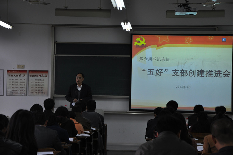 3月29日下午,学校以“夯实党建工作基础,全力推进五好支部建设“为主题,组织举办了第六期“书记论坛”。首批“五好” 达标党支部代表及党总支代表在论坛上交流了创建工作经验与体会。学校党委书记费英勤做了题为“抓基层、打基础,提高我校党建科学会水平“的报告。学校党委各部门、各总支负责人,全体支部书记参加论坛。论坛由学校党委副书记黄光杰主持。