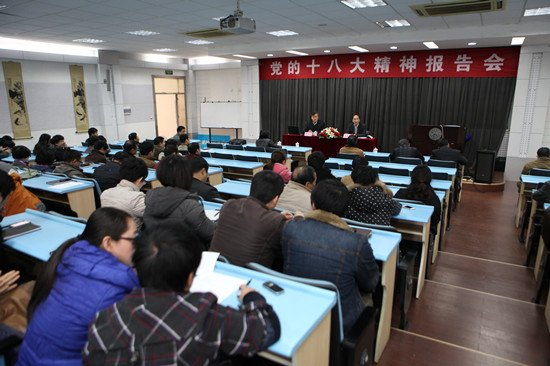 12月12日下午,学校召开党委理论学习中心组(扩大)会议。会议邀请中共中央党史研究室研究员、第三研究部党建处处长张士义作党的十八大专题辅导报告。学校党委理论学习中心组成员及全体副科职以上干部参加了报告会。报告会由党委书记费英勤主持。