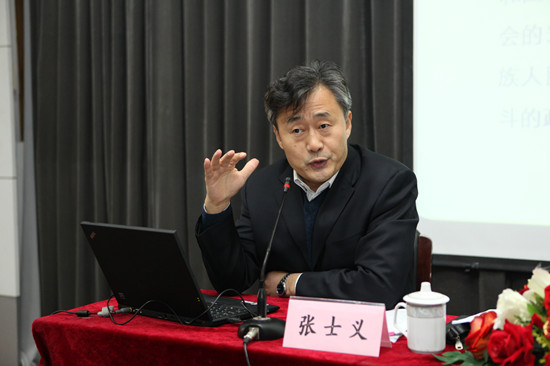 张士义以《发展中国特色社会主义的政治宣言》为题,在简要地介绍了党的十八大报告的起草和修改情况后,从高举一面旗帜、两个奋斗目标、增强“三个自信”、四代领导集体的历史贡献、“五位一体”总体布局等方面多角度对党的十八大精神进行了解读。党的十八大是在我国进入全面建成小康社会决定性阶段召开的一次十分重要的大会,也是党的奋斗历程中又一次承前启后、继往开来的大会。党的十八大报告以简洁、朴实的语言,准确而鲜明地阐述了关系我们党和国家工作局面的一系列重大理论和实际问题,描绘了全面建成小康社会的宏伟蓝图,反映了时代要求和人民意愿,是我们党团结带领全国各族人民沿着中国特色社会主义道路继续前进,为全面建成小康社会而奋斗的政治宣言和纲领。