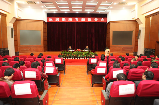 12月6日下午,学校在金宗城法学中心举办了反腐倡廉的专题报告会。