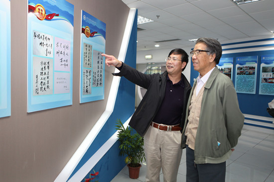 在金伟良院长的陪同下,陈肇元院士参观了我校十年办学成果展。金院长就我校的师资情况、专业配置、人才培养、科研服务、境外交流等方面向陈院士做了详细的介绍,并解答了陈院士的相关问题。参观完十年成果展,陈院士与金院长就学校发展与建设做了深入交流。陈院士对理工十年的变化颇有感触,他指出,作为宁波人,他很高兴地看到理工学院的快速发展。