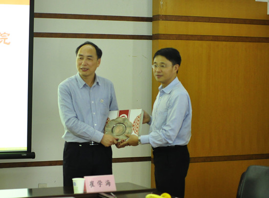 费英勤书记代表学校对成洪波一行来访我校表示欢迎。他从学校概况、人才培养、学科专业建设、师资队伍、科研与社会服务、国际合作与交流、党建与思想工作、办学条件八个方面对学校作了介绍,并重点介绍了学校在科研与社会服务方面的情况。随后,副院长郑堤教授着重就科研相关内容做了讲解。他指出,我校在高校服务社会、地方的方面目标方向明确,以服务宁波为立足点。
