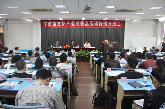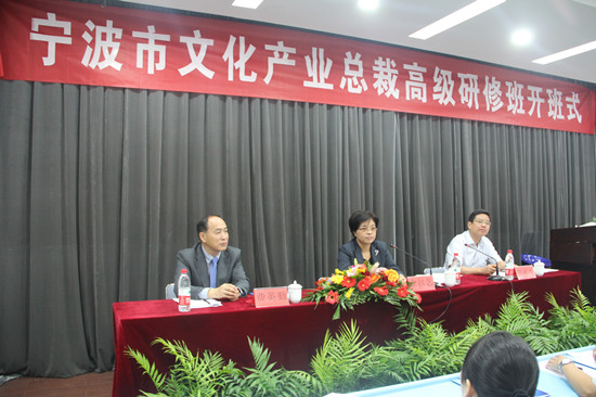 宁波市委常委、宣传部部长余红艺在仪式上讲话。她指出,文化产业是加快经济发展方式、推动经济社会转型升级的重要抓手,是满足人民群众多样化多层次多方面精神需求的重要途径,举办本期文化产业研修班具有十分重要的意义。我市文化产业在近几年持续发展下,还存在不少问题和不足,要正确认识和把握文化产业发展的规律及趋势至关重要,一要整合现有文化产业资源,组建龙头产业集团,集聚上下游产品形成规模产业园;二要推动文化产业与相关产业融合发展,为文化产业提供资源合理配置,促进文化产业跨越式发展;三要大力发展技术含量高、附加值高的文化产品,使文化与高科技有机结合,形成文化产业现代特色;四要发展创意产业,吸收创意型文化人才。