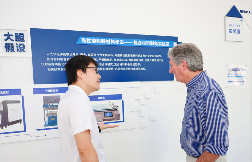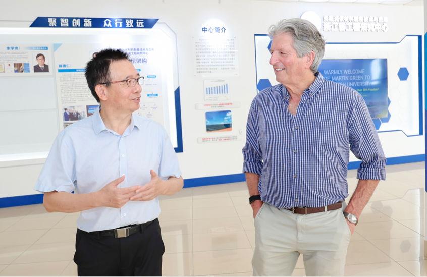 期间,马丁·格林院士在杨德仁院士的陪同下,参观了学校先进光伏材料制备技术与应用浙江省工程研究中心,杨校长详细介绍了先进光伏材料制备技术与应用浙江省工程研究中心的相关情况。该中心于2023年11月正式揭牌成立,采用“高校+科研平台+龙头企业”的创新合作模式,致力于推动光伏技术的科技成果转化与应用推广。杨校长表示,研究中心的成立将为浙江省打造“光伏大省”的战略目标提供有力支撑,同时也将为国家的“双碳”目标实现贡献高校的力量。马丁·格林院士详细了解我校在光伏材料与器件领域的研究进展和成果,并对相关科研工作给予了积极评价。