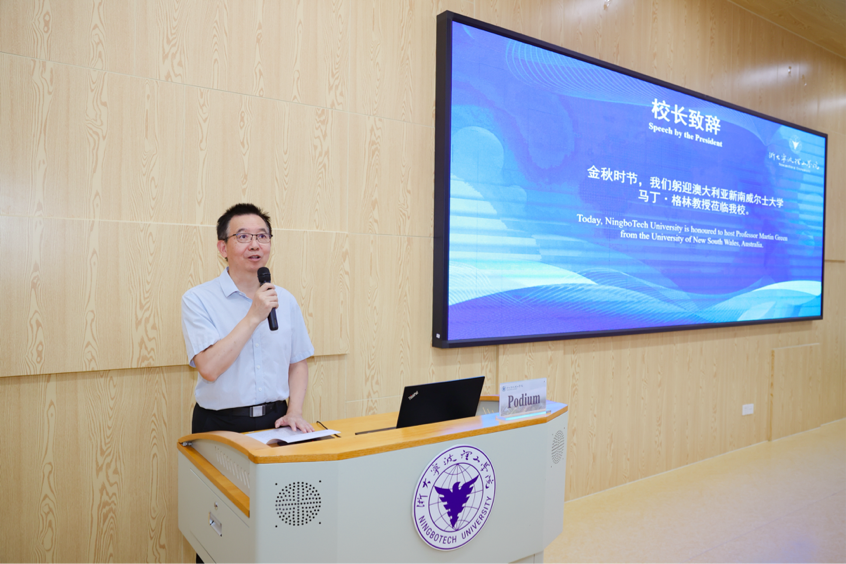 报告会上,校长杨德仁院士致辞。他代表全校师生,向远道而来的马丁·格林院士及各位专家学者表达了最热烈的欢迎和最诚挚的感谢。杨德仁在致辞中指出,马丁·格林院士不仅是澳大利亚科学院的杰出代表,更在全球光伏技术领域享有盛誉,荣膺多项国际顶尖奖项,为光伏技术的商业化发展树立了里程碑式的成就。