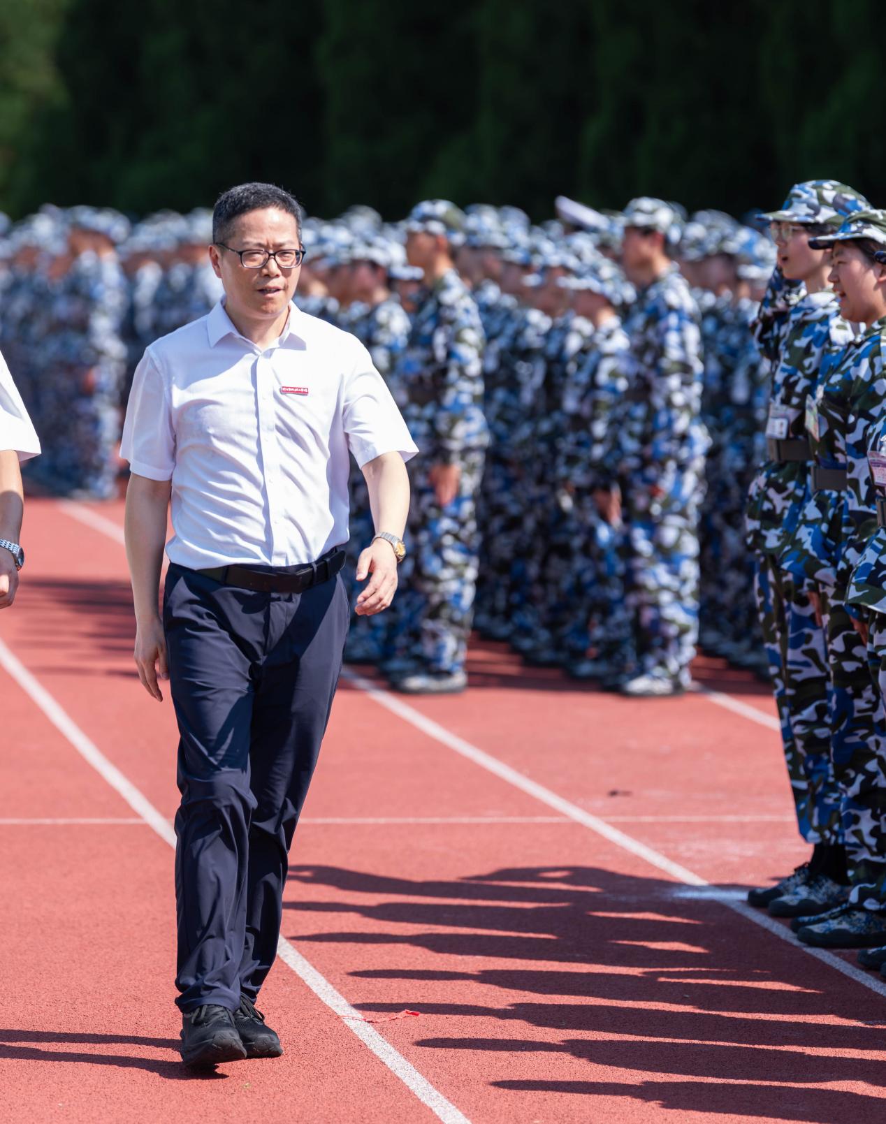 在高昂的阅兵进行曲中,鲁东明检阅参训学员。学员们在操场列队,昂首挺胸、意气风发,以昂扬斗志接受检阅,充分展现了新时代青年学子坚韧不拔、朝气蓬勃的精神面貌。