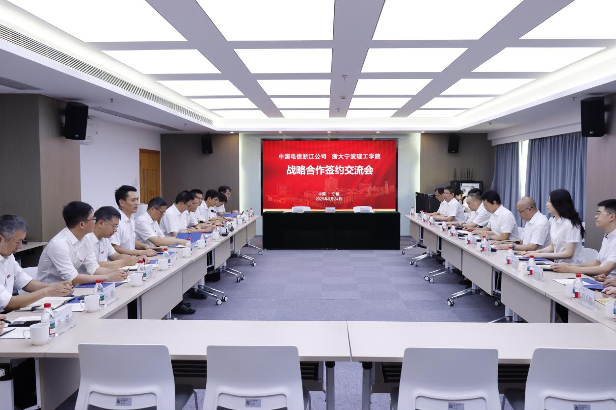 9月24日上午,中国电信浙江公司与浙大宁波理工学院战略合作签约交流会在我校举行。中国电信浙江公司总经理李云庄、集团公司科技创新部副总经理史凡、浙江公司副总经理刘健,学校校长杨德仁、副校长鲁东明、张荣祥,以及双方相关部门负责人参加。