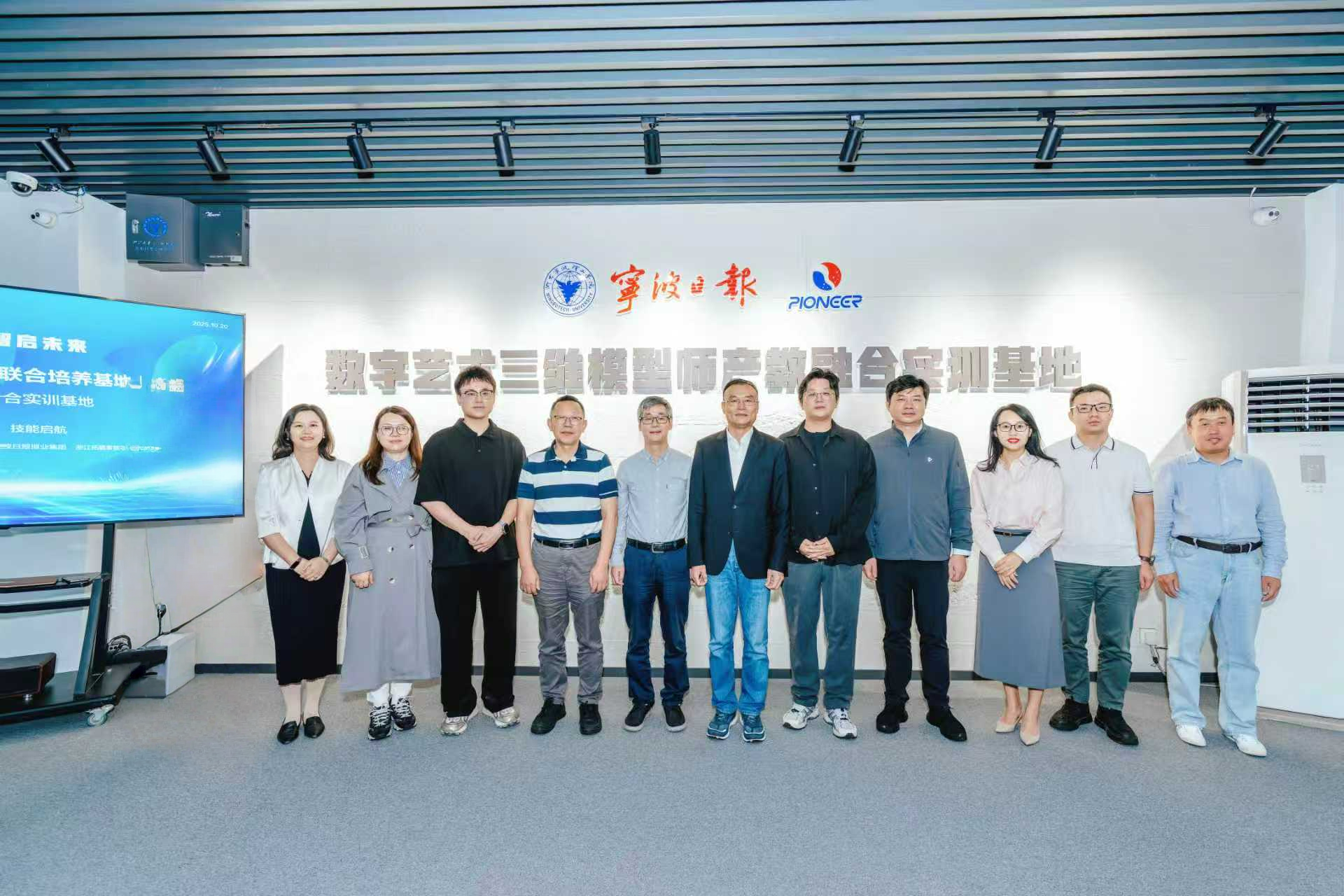 2025年10月20日,“数字艺术三维模型师产教融合实训基地”启动仪式在我校举行。该基地作为新闻与传播专硕学位点研究生联合培养体系的重要平台,由传媒与法学院牵头,联合宁波日报报业集团、浙江花果山文化传媒有限公司、浙江拓疆者数字媒体有限公司共建,旨在探索高校与行业协同育人新模式,推动产教融合实践教学体系建设。