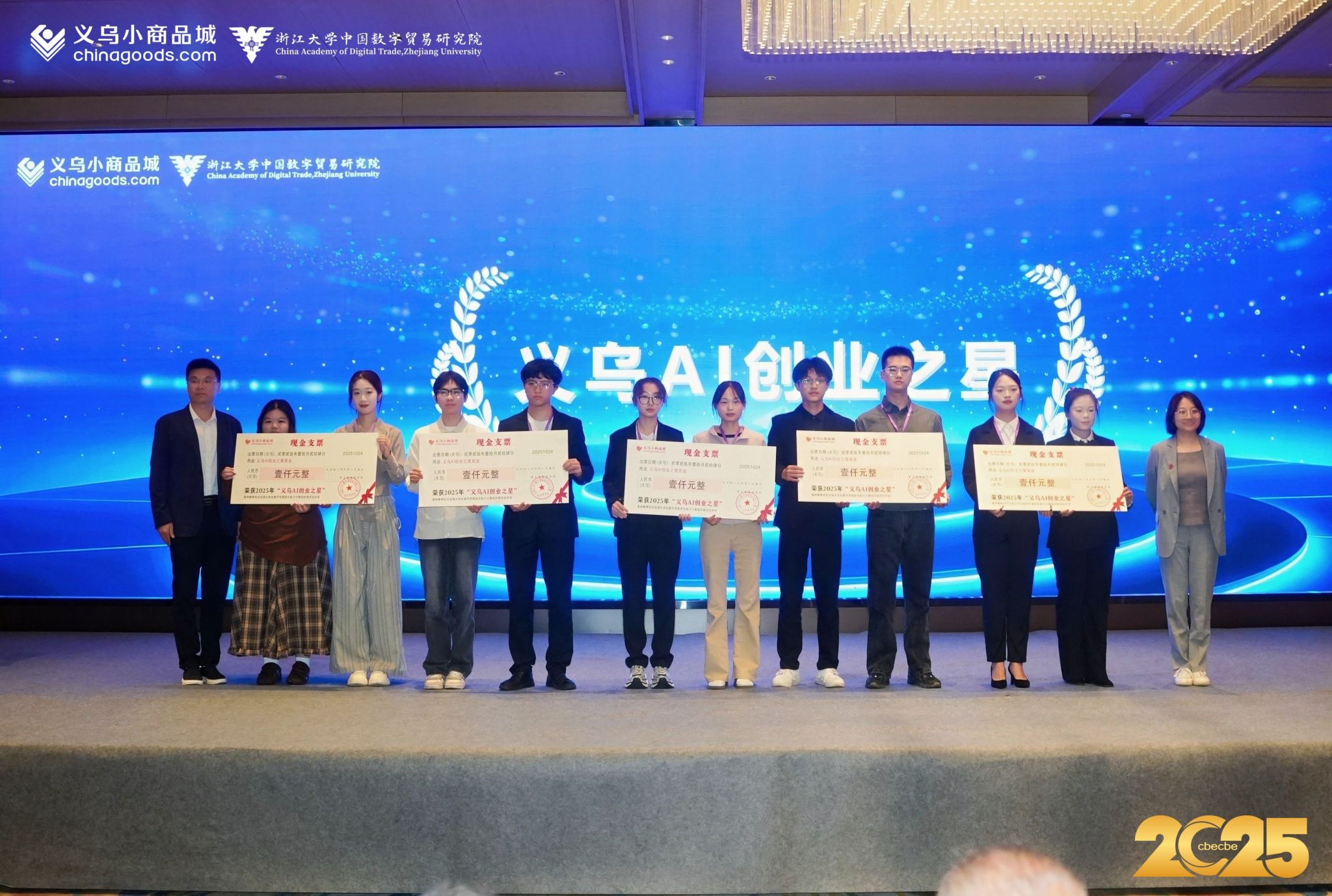 队长杨立濠,队员封丽娜、徐静怡、许静怡、陈睿翔在危薇、李雪艳老师的指导下,荣获义乌小商品城AI +创新创业赛全国总决赛一等奖,义乌AI创业之星。