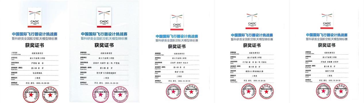 2025年10月20日至10月29日,由国家体育总局航空无线电模型运动管理中心、中国学生体育联合会、中国航空运动协会主办的2025年中国国际飞行器设计挑战赛总决赛暨科研类全国航空航天模型锦标赛(CADC)在河北省张家口崇礼区举行。我校由董小燕老师、裘君老师带队的航模队参加比赛并获得佳绩。
