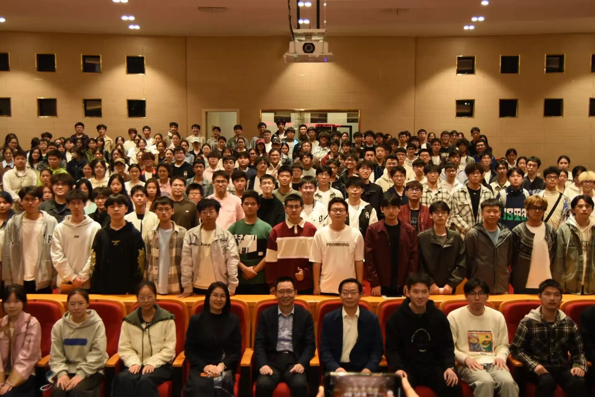 2025年11月5日晚,在浙大宁波理工学院启新大讲堂内,学校校长杨德仁为材料科学与工程学院的25级新生带来了一场始业教育,与新生们面对面聊专业。