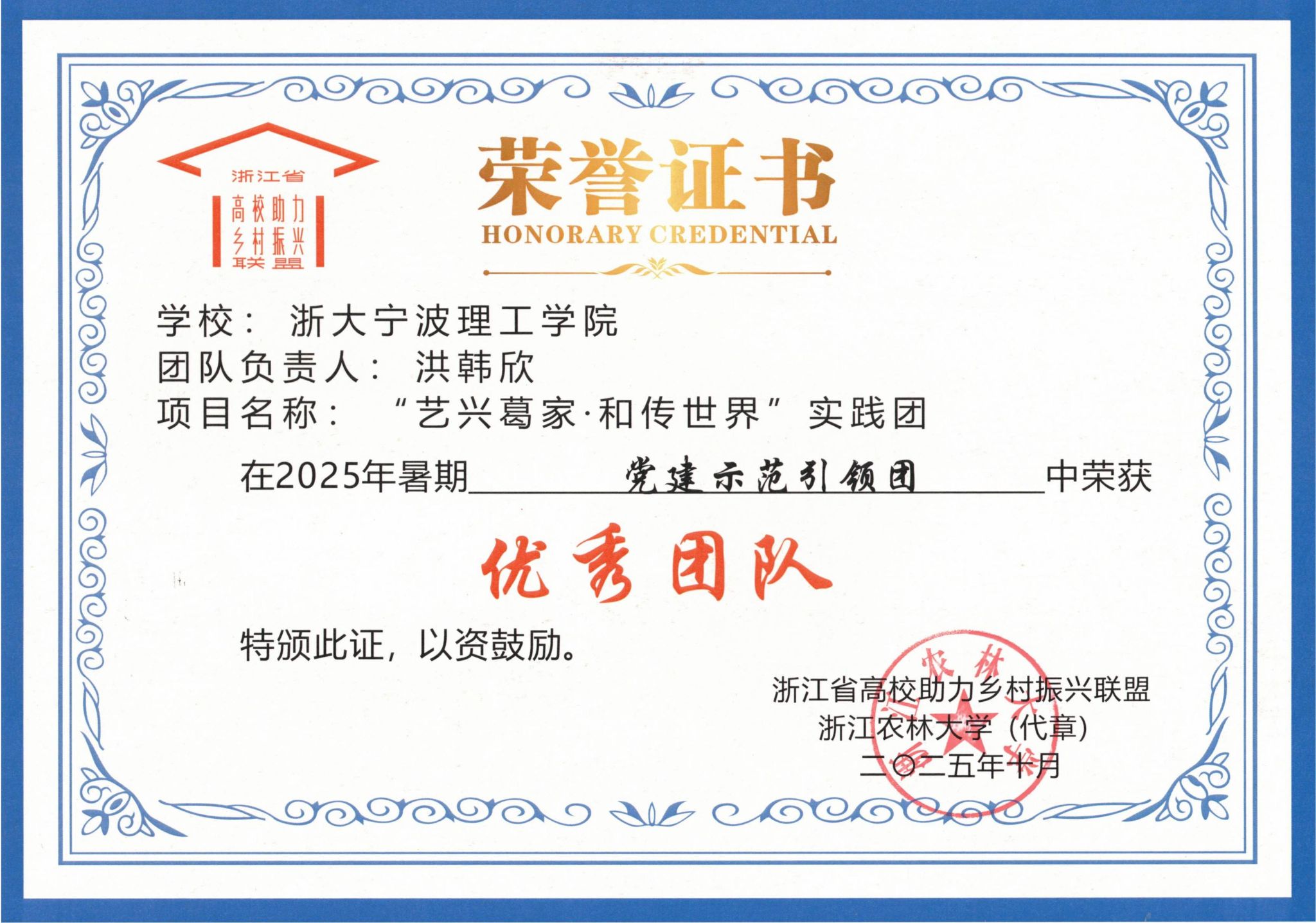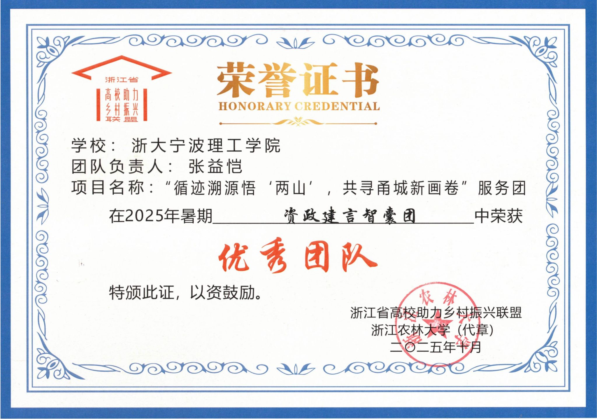 近日,浙江省高校助力乡村振兴联盟公布2025年浙江省高校暑期服务乡村振兴工作优秀团队评选结果,学校5支师生实践服务团分别荣获“省高校暑期服务乡村振兴工作优秀团队”称号。