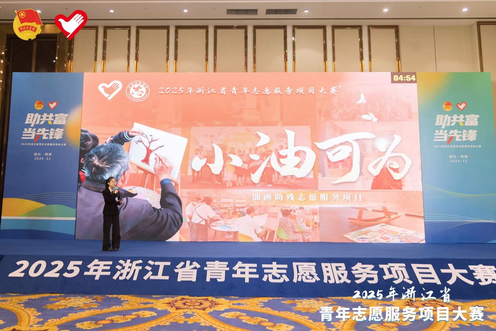 近日,2025年浙江省青年志愿服务项目大赛决赛在绍兴市柯桥区圆满落幕。本次大赛由共青团浙江省委主办,浙江省青年志愿者协会、共青团绍兴市委、浙江省团校承办,以“助共富 当先锋”为主题,设置主体赛、高校专项赛、“浙哲共富行”三大赛道,涵盖助力缩小“三大差距”(含乡村振兴)、为老服务、阳光助残等13个类别,吸引全省众多优秀志愿服务项目同台竞技。我校选送的《小油可为——油画助残志愿服务项目》荣获高校专项赛银奖。