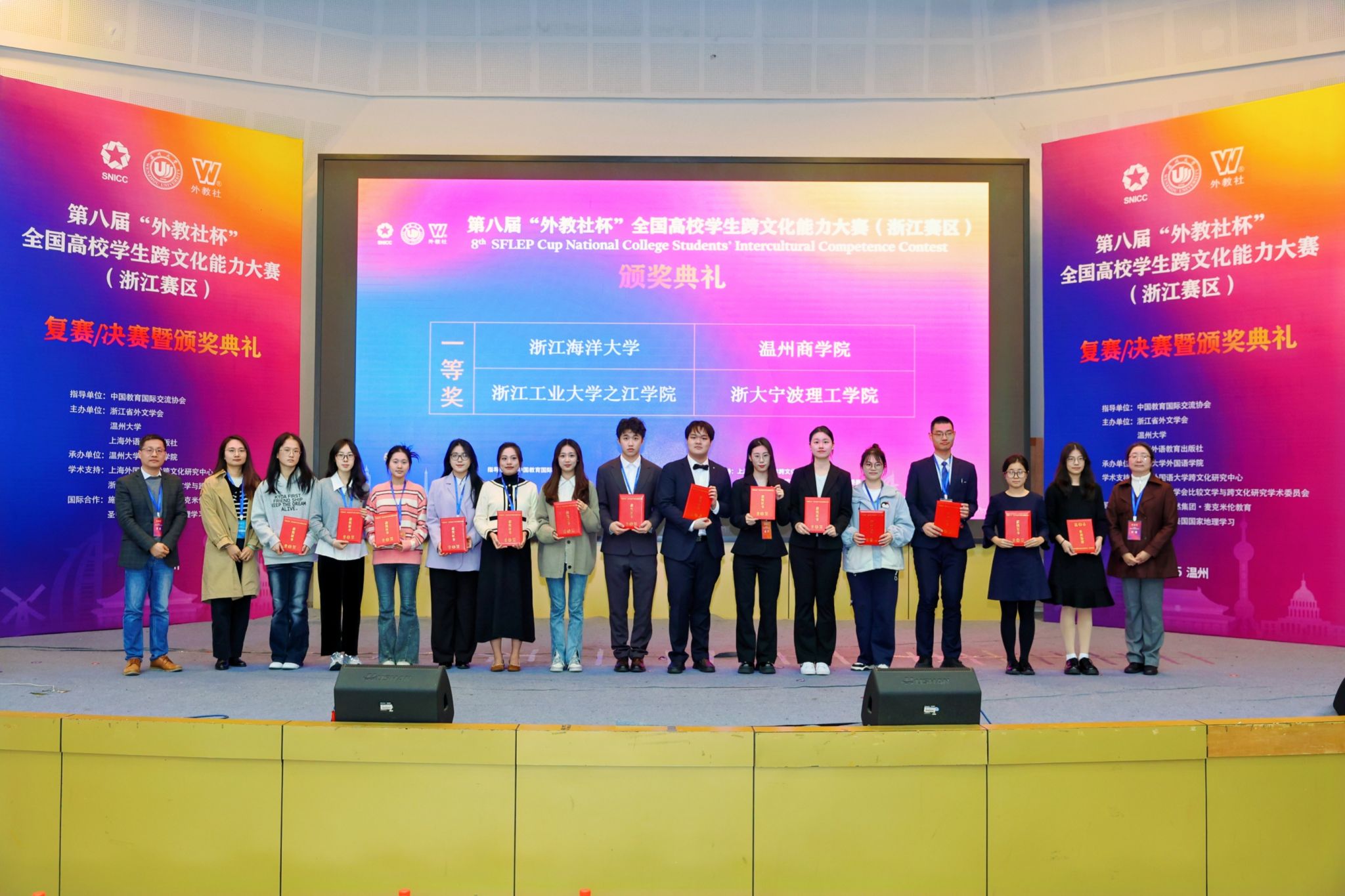 “外教社杯”全国高校学生跨文化能力大赛(浙江赛区)由浙江省外文学会、温州大学、上海外语教育出版社主办,旨在培养具有中国情怀、国际视野、专业本领、跨文化沟通能力和全球胜任力的国际化人才。该竞赛2023年被纳入“全国普通高校大学生竞赛榜单”,成为外语类学科竞赛的权威赛事之一。