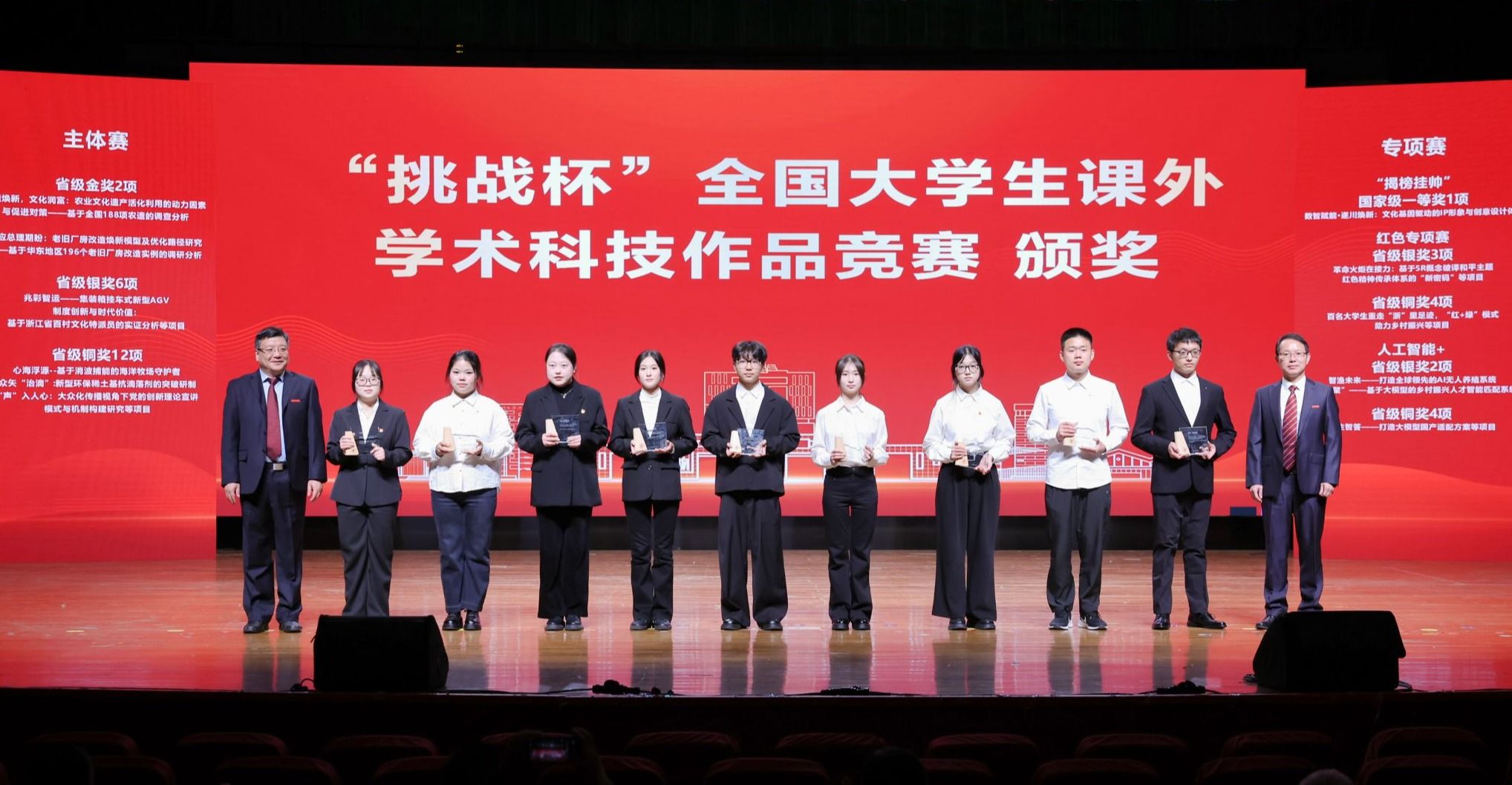 随后,第十九届“挑战杯”浙江省大学生课外学术科技作品竞赛省级金奖获奖团队与浙江省国际大学生创新大赛(2025)银奖获奖团队分别进行了项目展示,生动呈现了其创新成果与实践路径,进一步激励广大同学立足社会需求,投身创新实践。