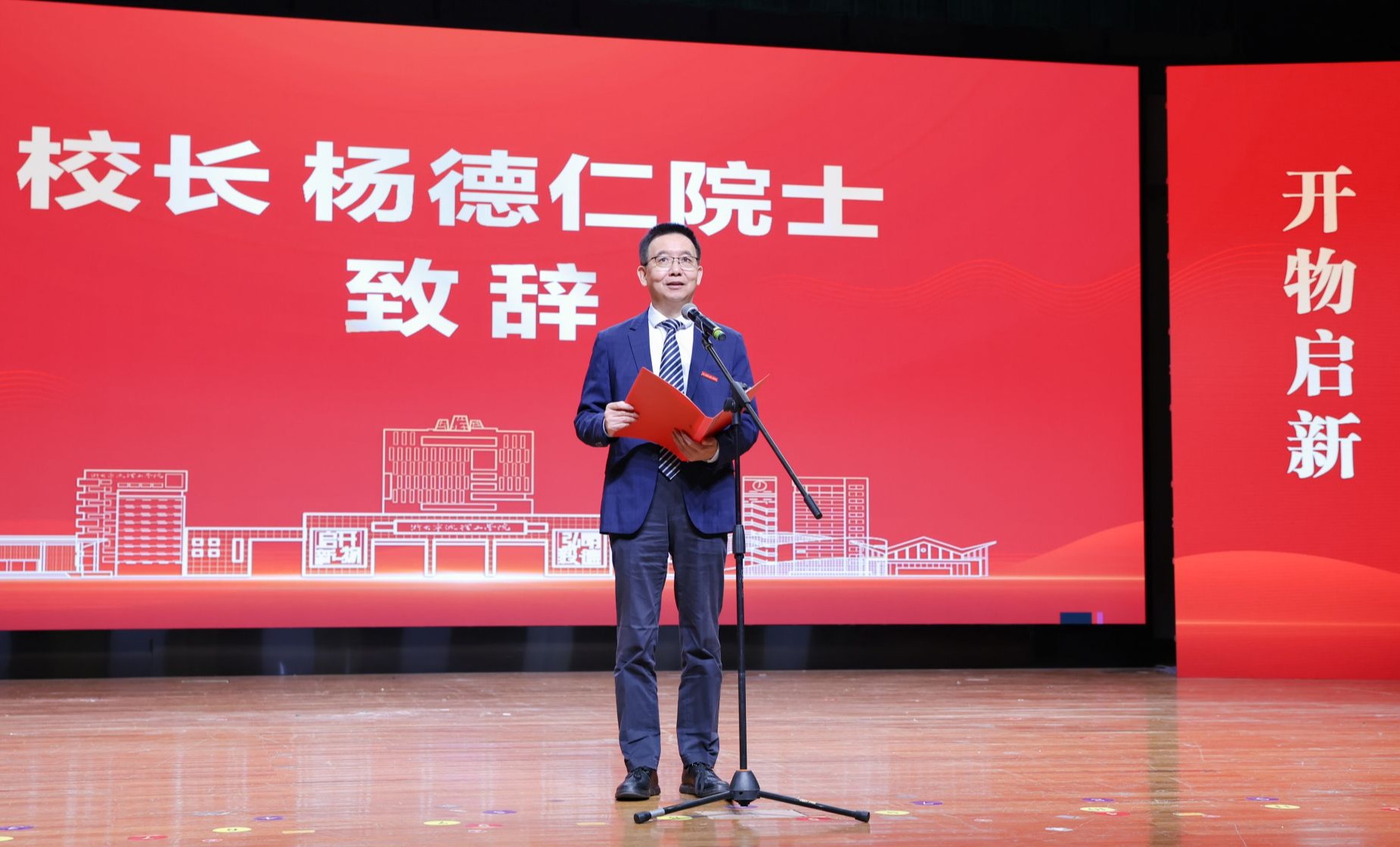 杨德仁首先向受表彰的集体和个人表示热烈祝贺,并向长期以来关心、支持学校建设与发展的各界人士致以衷心感谢。他对同学们提出三点期望:一要深耕专业领域,聚焦学科前沿,努力学透每个知识点、练精每项技能;二要笃行实践,在实干中提升本领,以专业能力助力产业升级、文化传承与基层治理;三要勇于创新、主动求变、敢于挑战,自觉将个人理想融入国家发展大局,积极服务地方、贡献社会,在民族复兴的进程中书写青春篇章。