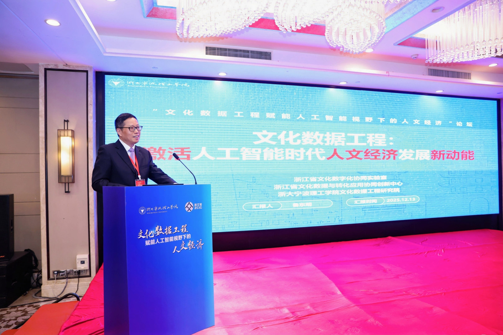 12月13日,“文化数据工程赋能人工智能视野下的人文经济”论坛在宁波举行。本次论坛由浙大宁波理工学院与浙江省文化产业投资集团有限公司联合主办,浙江省文化产权交易所股份有限公司等承办,浙江省文化数字化协同实验室、浙江省文化数据与转化应用协同创新中心、宁波市文化产业促进会等多家单位协办。