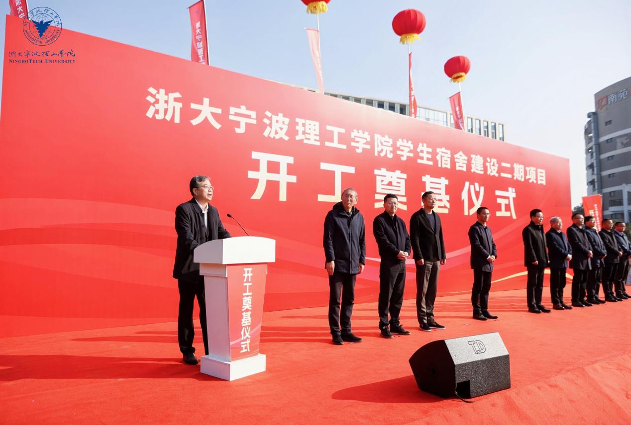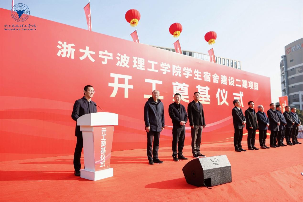 胡斌代表市教育局对学校项目的顺利开工表示祝贺,他表示,学校两栋学生宿舍楼相继开工,是响应我省高校基础设施提质扩容工程的实际行动,也是扩大我市优质高教资源供给的重要举措。他提出,校园建设内容要紧密对接“一校一策”方案,将立德树人根本任务融入建设全程,切实为人才培养、学科提升和规模拓展提供坚实保障,打造有温度、有内涵的育人空间,主动融入宁波高教强市战略,努力办好人民满意的高等教育。