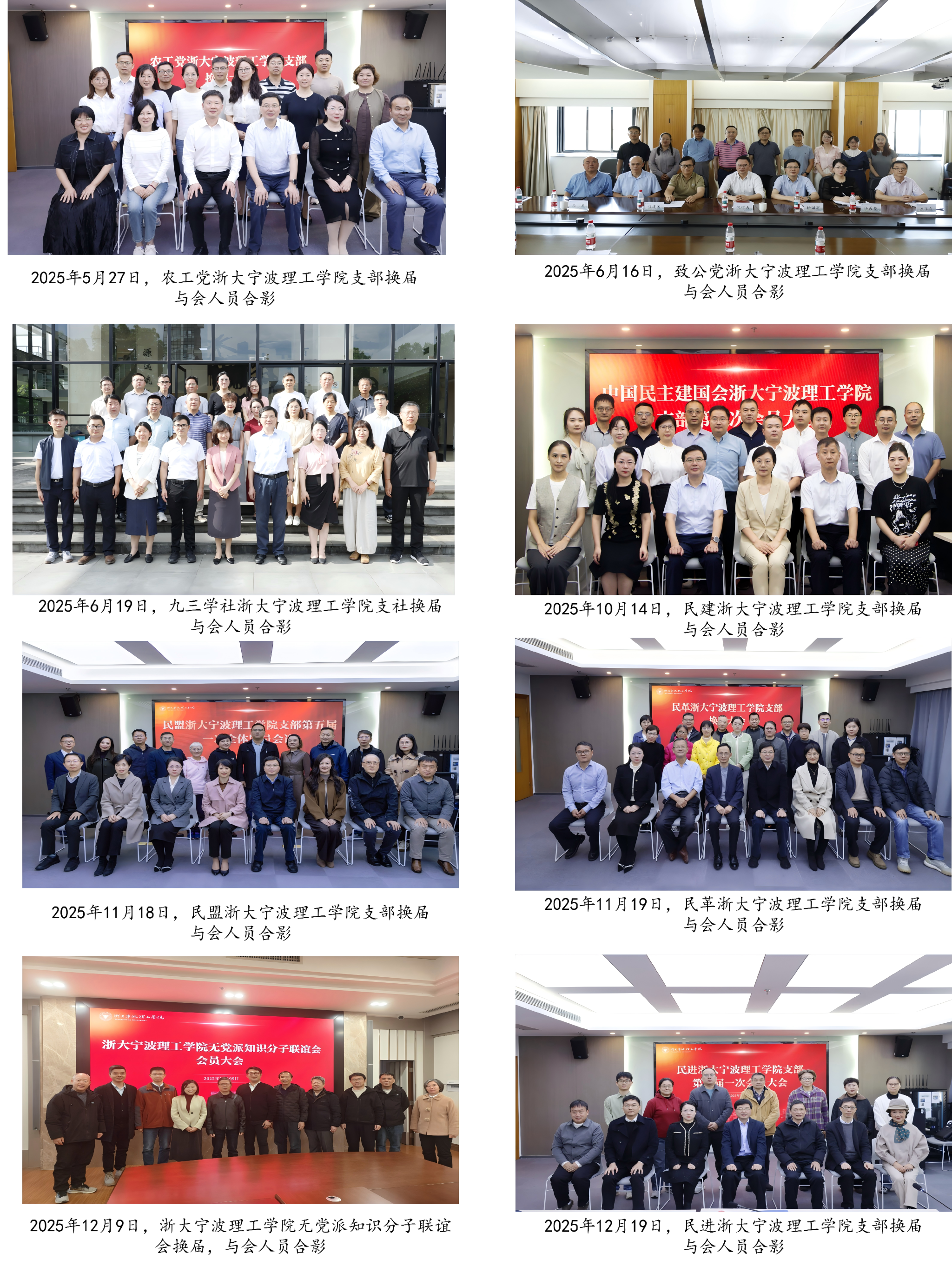 5月27日至12月19日,学校民革、民盟、民建、民进、农工党、致公党、九三学社等7个民主党派基层组织及知联会分别召开换届大会。各民主党派宁波市委会领导和校党委副书记、统战部部长杨国富出席会议并讲话。