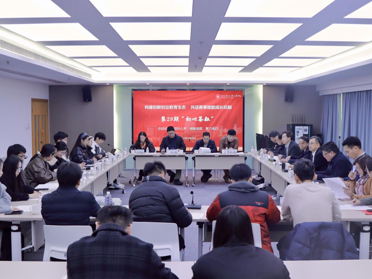 2025年12月24日,学校举行主题为“构建创新创业教育生态,共话赛事赋能成长机制”的第29期“初心茶叙”。学校党委书记徐方、党委副书记黄光杰、副校长张荣祥,以及相关部门负责人与来自各学院的学生代表、教师代表齐聚一堂,围绕创新创业教育主题,总结经验、倾听心声、破解难题、聚力前行。