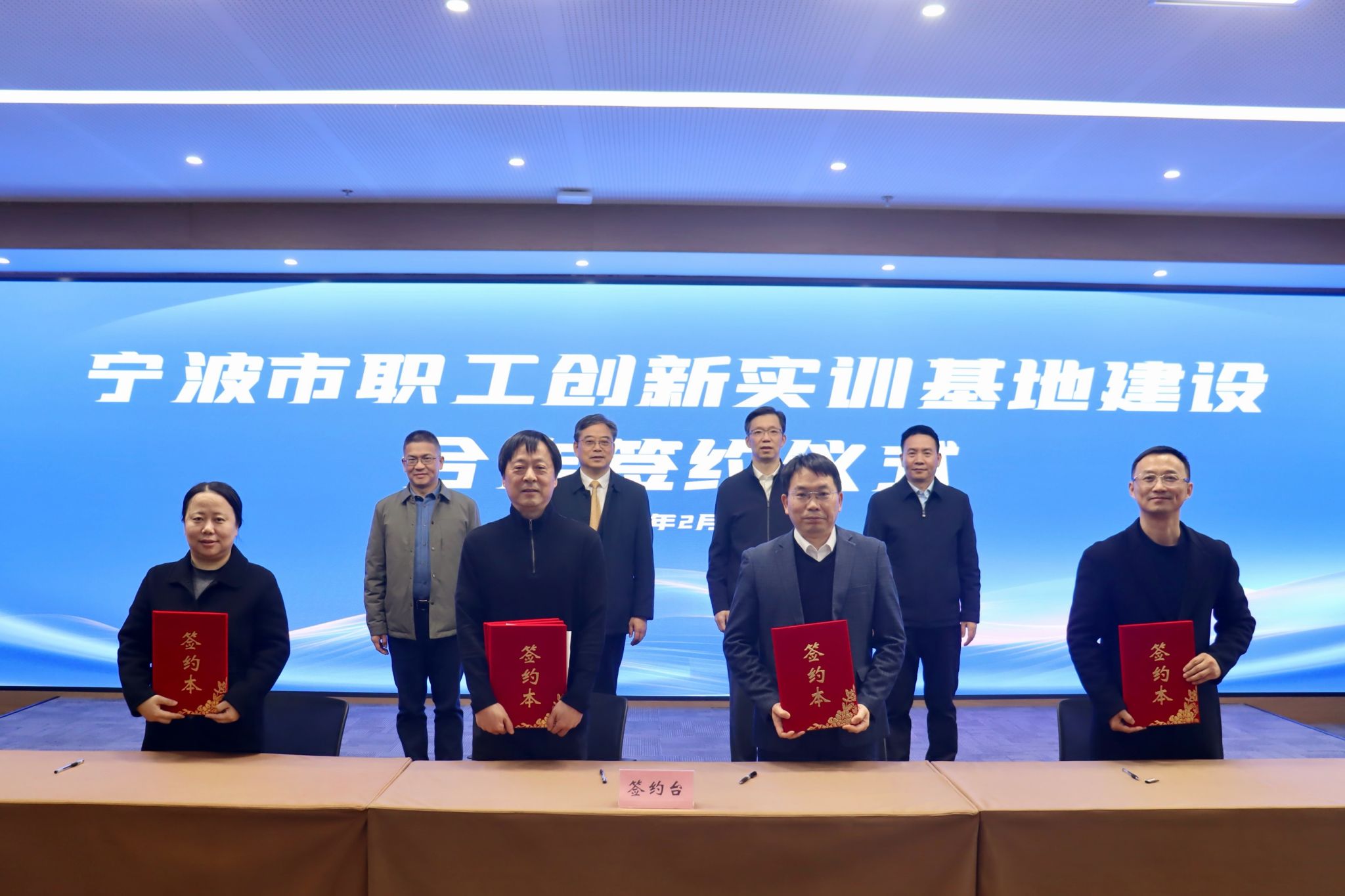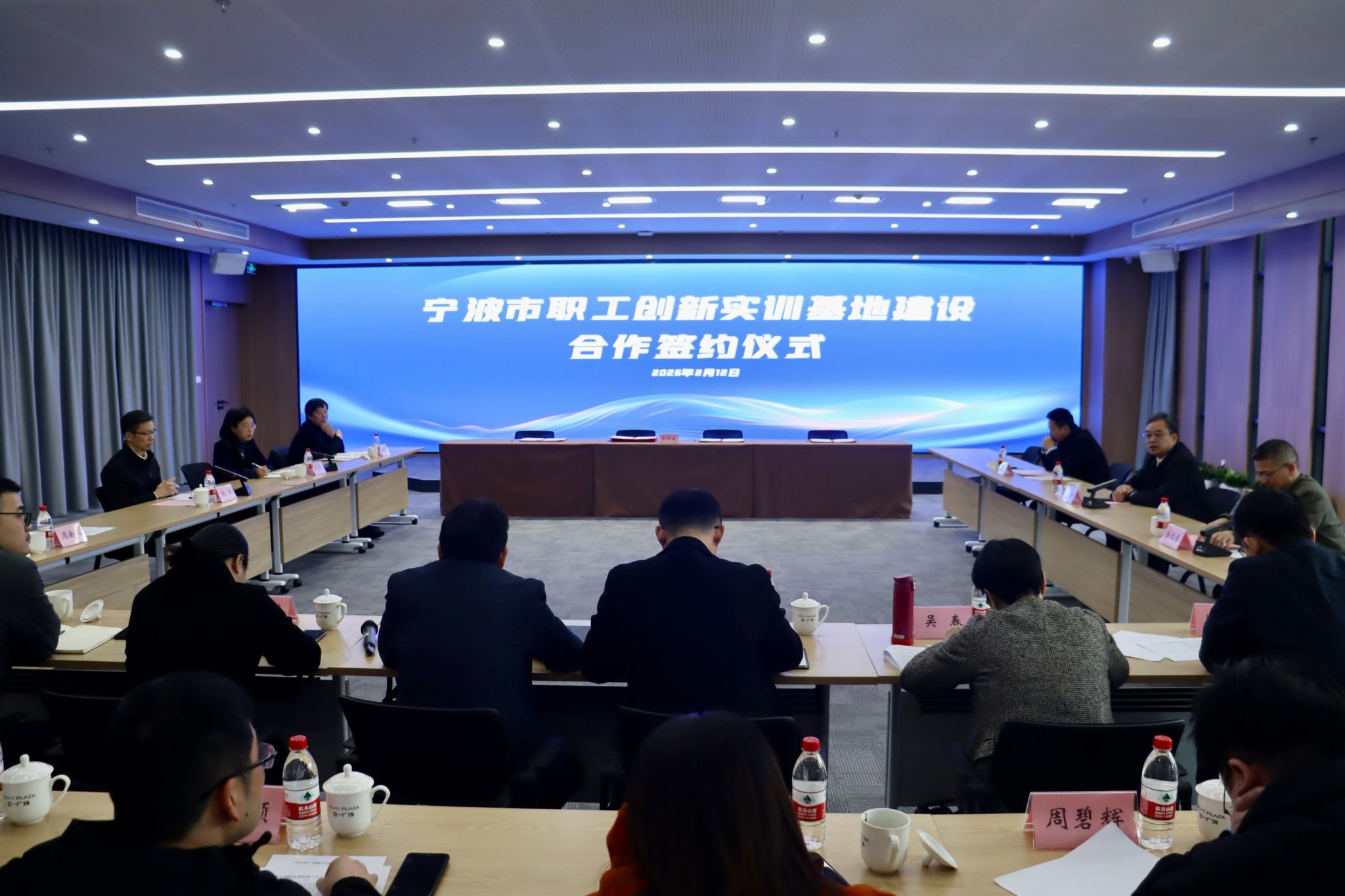 2月12日上午,宁波市职工创新实训基地建设合作签约仪式在五一广场举行。我校与市劳模工匠学院签署战略合作协议,标志着学校正式融入全市“人工智能+”职工技能培训新体系建设。