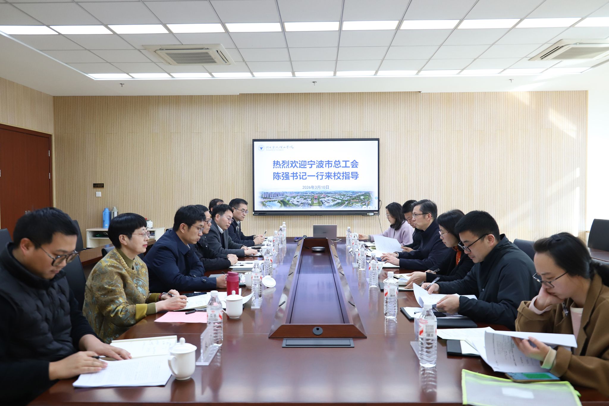 3月10日,宁波市总工会党组书记、副主席、一级巡视员陈强一行来访浙大宁波理工学院,开展市职工创新实训基地人工智能领域的调研交流工作。校党委书记徐方,校党委委员、副校长鲁东明,学校地方合作处(继续教育管理处)、计算机与数据工程学院、继续教育学院相关负责人参加调研交流。