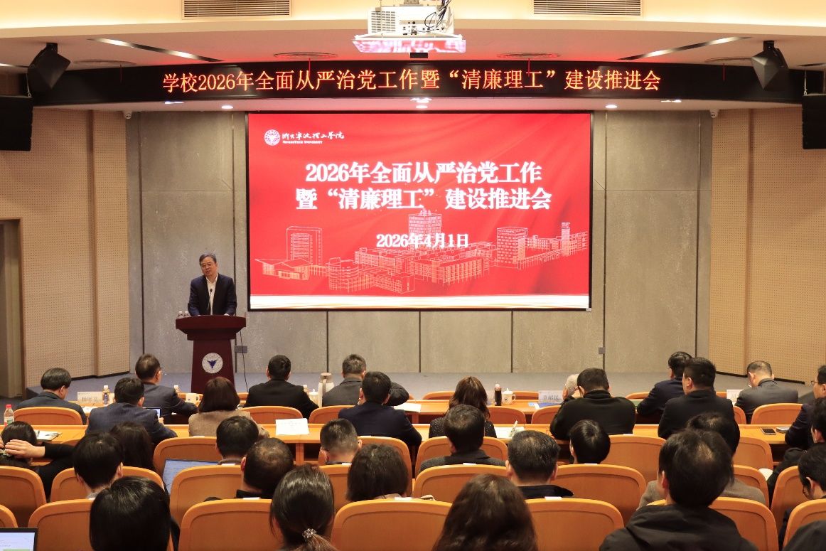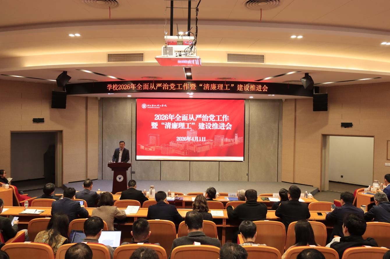 4月1日,学校召开2026年全面从严治党工作暨“清廉理工”建设推进会,深入学习贯彻习近平总书记关于党的建设、党的自我革命的重要思想,传达学习二十届中央纪委五次全会、省纪委十五届五次全会和市纪委十四届五次全会精神,研究部署2026年学校全面从严治党、党风廉政建设和反腐败工作。党委书记徐方出席会议并讲话,党委副书记、校长吕朝锋主持会议,纪委书记、监察专员胡文汉作纪检监察工作报告。