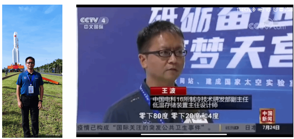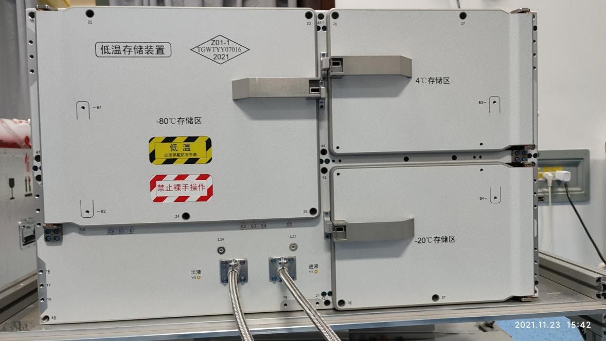 2022年7月24日,该低温存储装置随问天实验舱成功入轨,由中国电科16所和五院总体设计部联合承制,王波教授担任项目总师。该装置作为空间站核心共用支持设备,具备多元低温存储能力,可提供-80℃(25L)、-20℃(15L)、+4℃(15L)多温区存储,能够满足生物、试剂、材料等各类实验样品的差异化低温保存需求,为我国开展长期空间实验、推进空间生物科学研究提供了关键保障,是空间站中长期稳定运行的重要支撑,更是开展空间生物科学实验的必要条件。