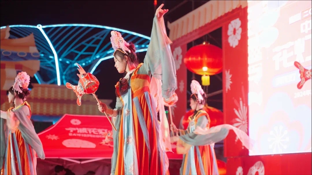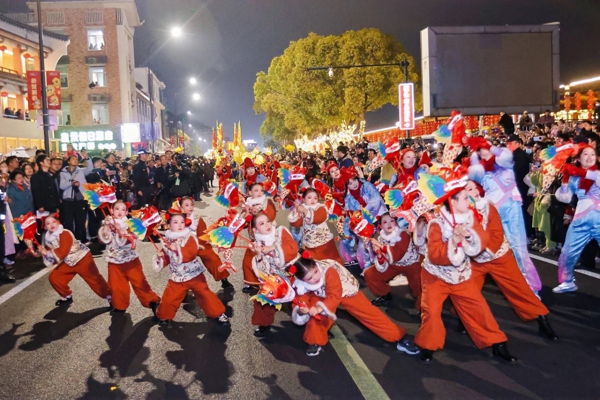 南塘老街上,传统舞龙、舞狮表演吸引游客驻足观赏;慈城古县城里,孩童们提彩灯嬉笑穿行;宁波植物园内,非遗变脸、杂技顶缸等表演精彩纷呈……