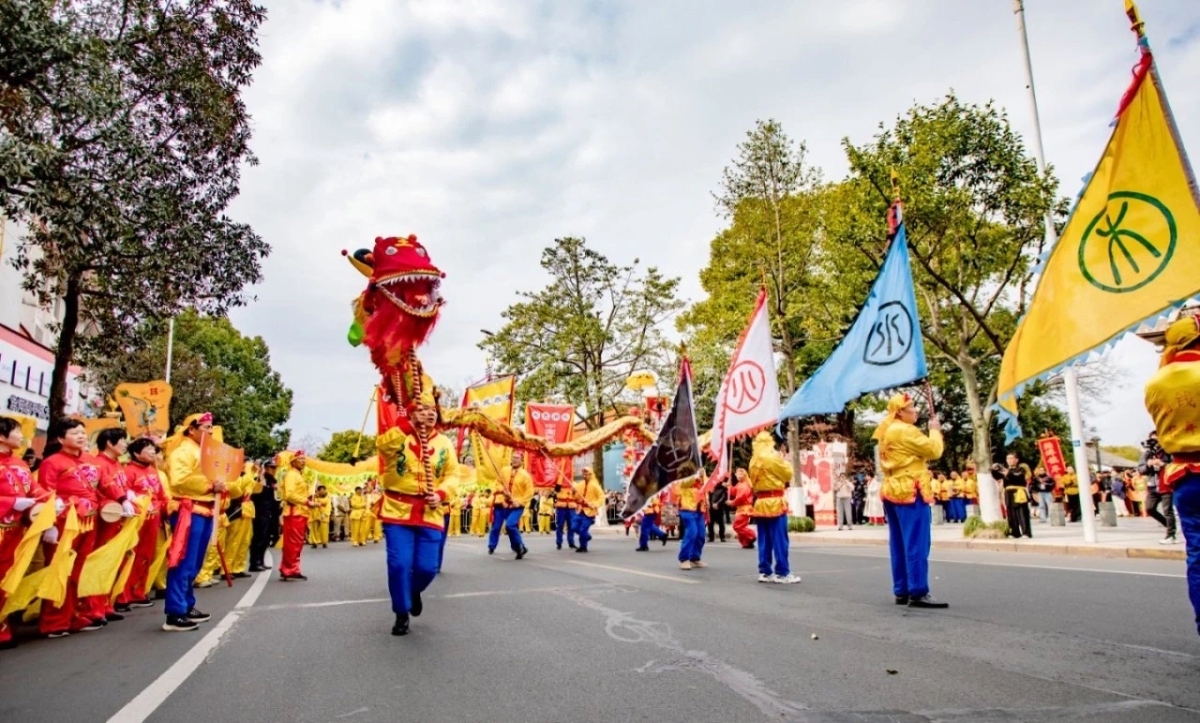 “铛……”当铜锣声在宁海县前童镇的街巷响起,一场延续了500多年的民俗盛会——元宵行会准时上演。大旗威风凛凛地在前引路,龙狮欢快舞动开道,23杠古亭、抬阁、秋千紧随其后,上万名村民、游客簇拥着队伍前行。