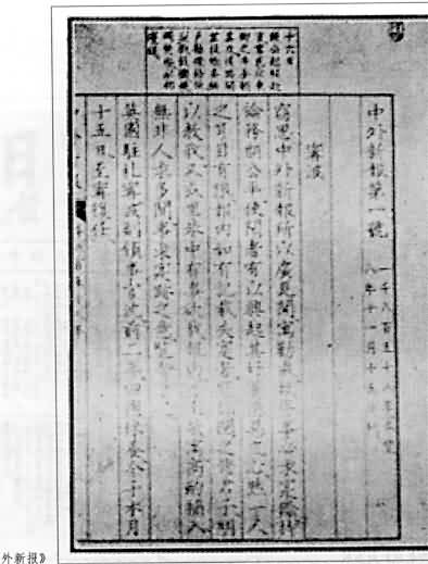 《中外新报》是一份地方性综合报纸,它在中国新闻史上具有十分重要的地位。