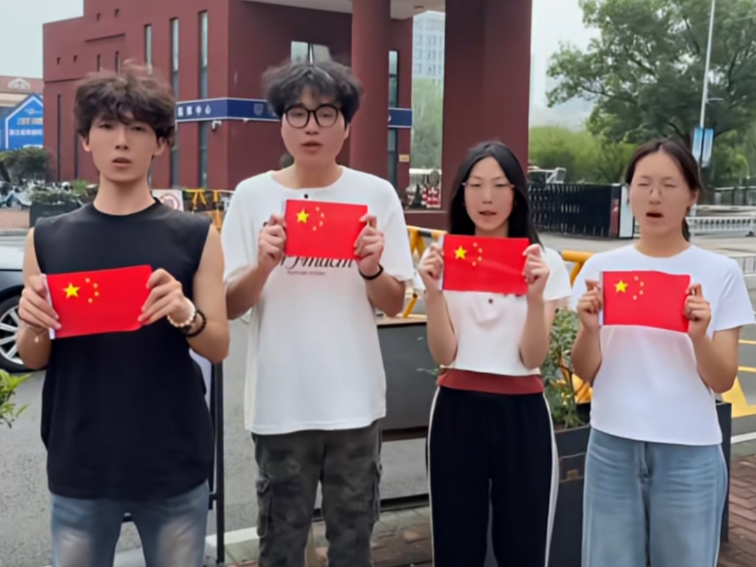 宁波大学师生在升旗仪式后联唱《大中国》《如愿》《守护》《歌唱祖国》,现场歌声一浪高过一浪,这是对祖国最深的告白。
