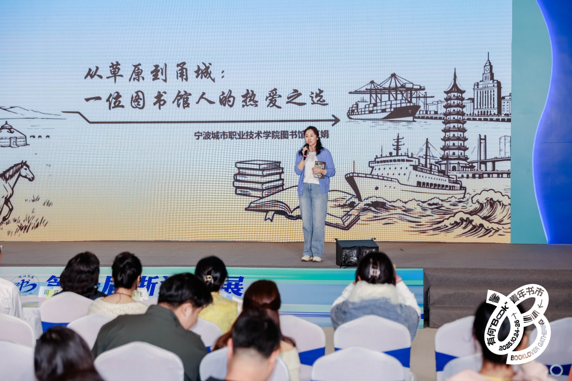 宁波大学的周诗瑶老师分享古筝与阅读在她生命中不可或缺的重要;宁波诺丁汉大学李阅瑶同学,从“‘教育’的含金量在哪里?”发问,分享书籍《你当像鸟飞往你的山》带来的感悟:从内蒙古到宁波扎根的王娟老师,通过《世界上为什么要有图书馆》,呼吁大家多多走进图书馆;浙江万里学院的张慕云老师从辅导员视角,分享如《山茶文具店》主人公一样“代笔”一样温暖守护成长的心路历程;宁波财经学院王赢泽同学分享自己为纪念在天堂的妈妈创作的散文集《花魂》……