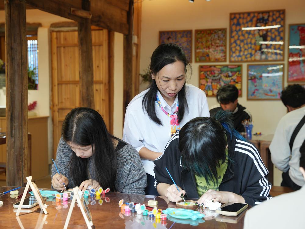 乡野绽放,画韵新生,“新村民”在蔡何亚的带领下,首次接触农民画文创设计。“你用的是水粉画的技法,真好看!”蔡何亚感慨,“年轻人总是为农民画注入新的活力,这一乡土的艺术形式一定能在现代土壤中绽放出更加绚丽的光彩。”