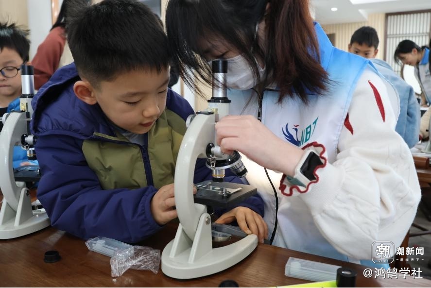 活动现场还设置了显微观察站,居民通过显微镜近距离观察蝴蝶翅膀切片,领略微观世界中的结构与色彩奥秘。鸿鹄学社成员现场讲解蝴蝶的形态适应性与生物多样性价值,使居民在科学探索中深化对生态保护的理解,体会到“小物种大生态”的深远意义。