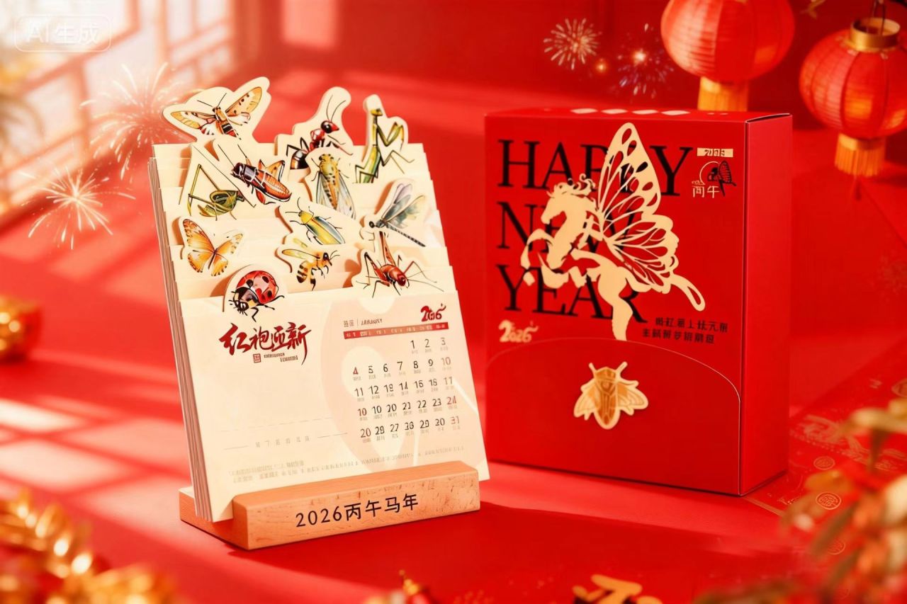 因此,“马小灶”在造型上依据灶马的昆虫特征如实保留,又借拟人化的神态赋予形象亲和力。“为使IP价值得以延续,团队与博物馆的专家老师共同开发了衍生品‘虫趣日历’与‘灶财纳福新年礼包’,装入祭灶果和VR体验卡,可以说是从味觉到感观,对传统文化的一次全新认知。”设计团队老师姜燚威说。
