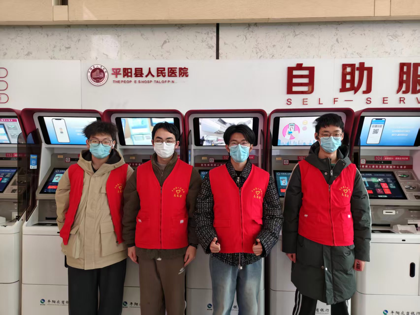 四位同学在平阳县人民医院做志愿者。受访者供图