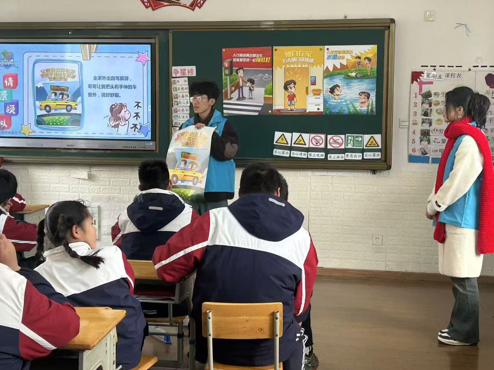 杨立濠参与志愿服务,为同学们讲解安全知识。受访者供图