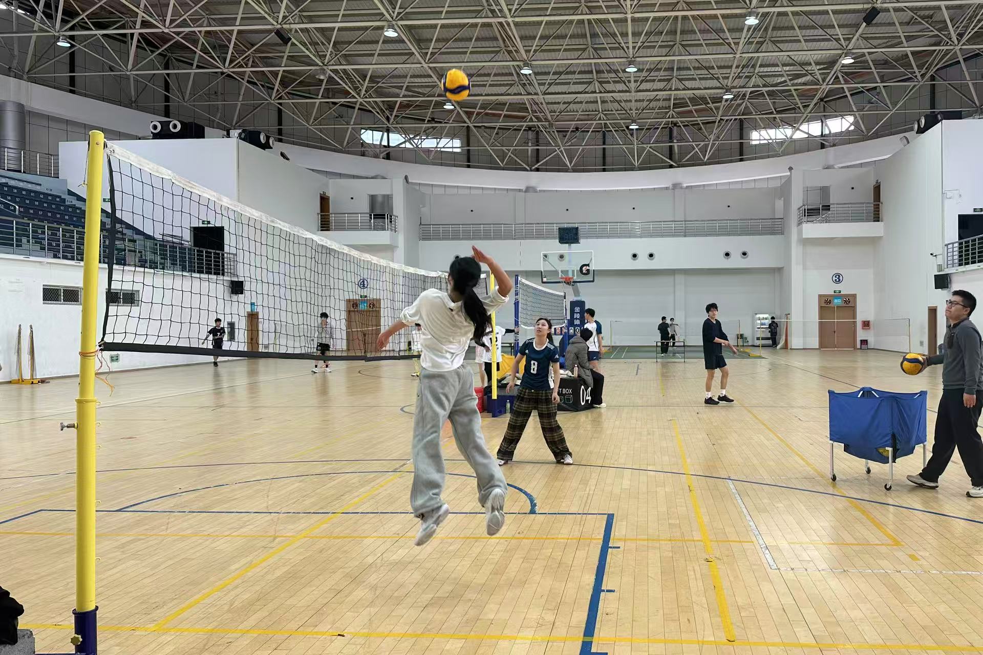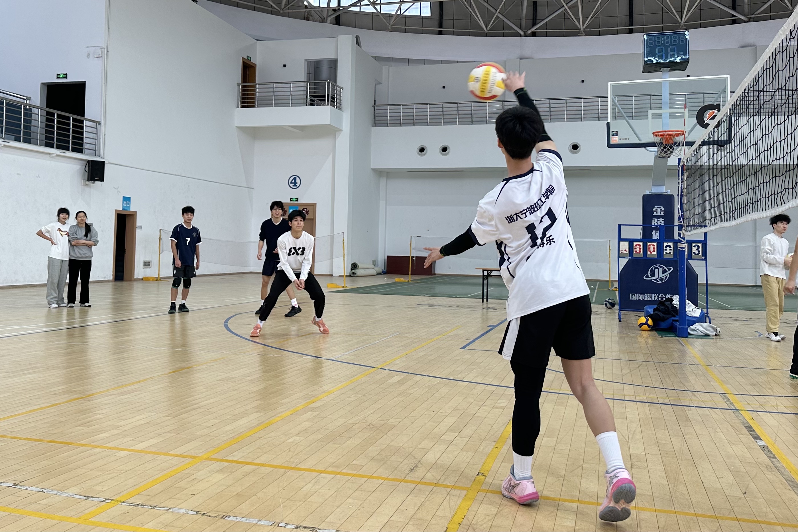 在浙大宁波理工学院,校排球队员们正在紧张备战。3月1日,队员们准时出现在训练场,为即将到来的浙江省第十七届大学生运动会排球比赛蓄力。年前,他们完成了五天集训。