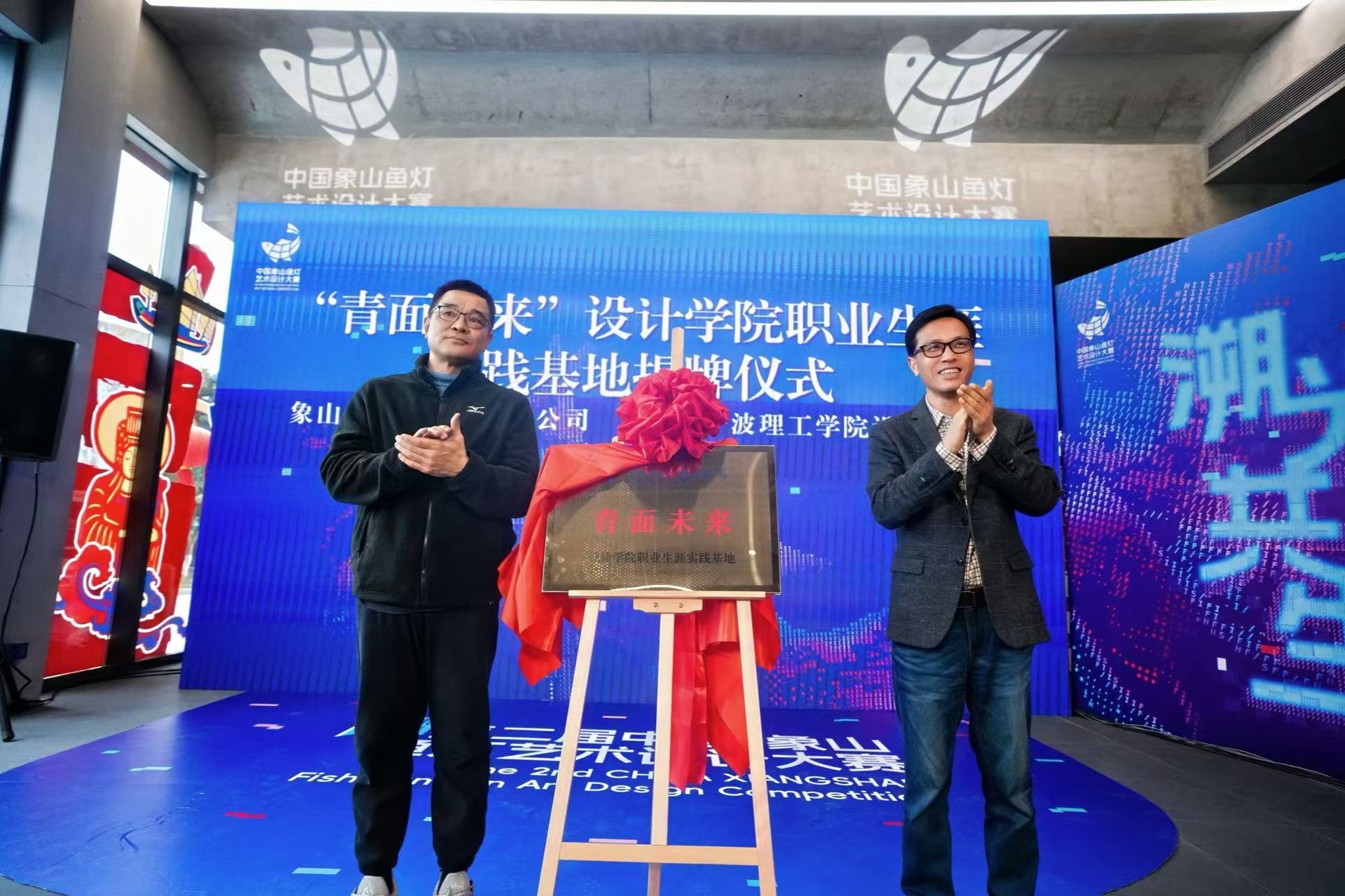 创意落地离不开产业赋能,校地携手成为此次活动的重要亮点。现场举行了校地战略合作协议签订暨实习基地揭牌仪式,象山县文化和广电旅游体育局与浙大宁波理工学院设计学院签订战略合作协议,双方将围绕渔文化IP孵化、设计人才培养、文旅产品研发等方面开展深度合作。同时,“浙大宁波理工学院设计学院实习基地”正式揭牌,这一举措实现了创意设计与文旅产业的精准对接,让高校人才资源与地方文旅发展同频共振,为象山渔文化创新发展打造了专属“人才孵化器”和“创意加油站”。