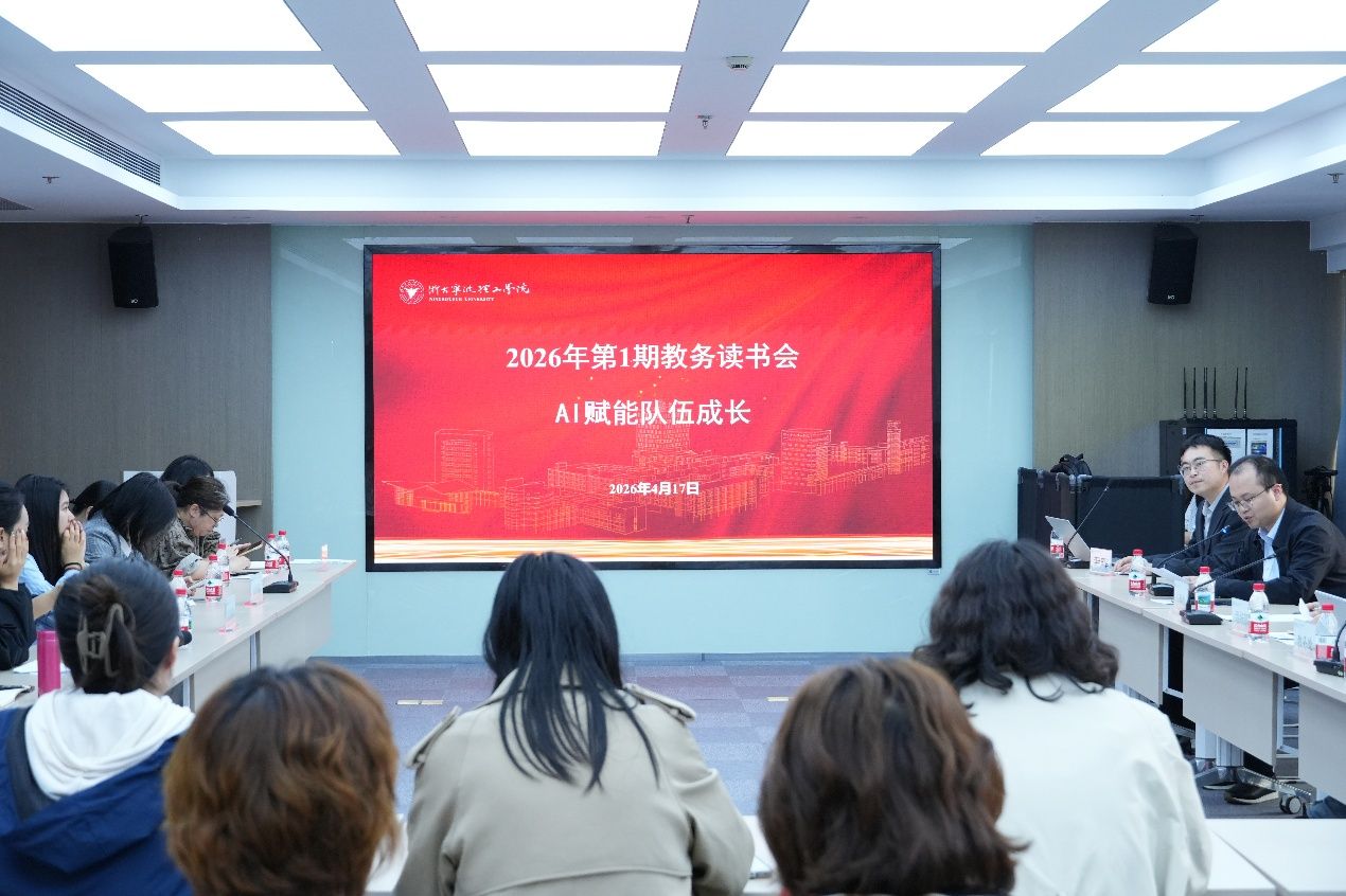 为推动人工智能技术与教务管理工作深度融合,提升教务队伍数字化办公能力与综合业务水平,4月17日下午,我校2026年第一期教务读书会在行政楼606会议室顺利举办。本次读书会以“AI 赋能队伍成长”为主题,各学院教务员及教务处全体人员参会。