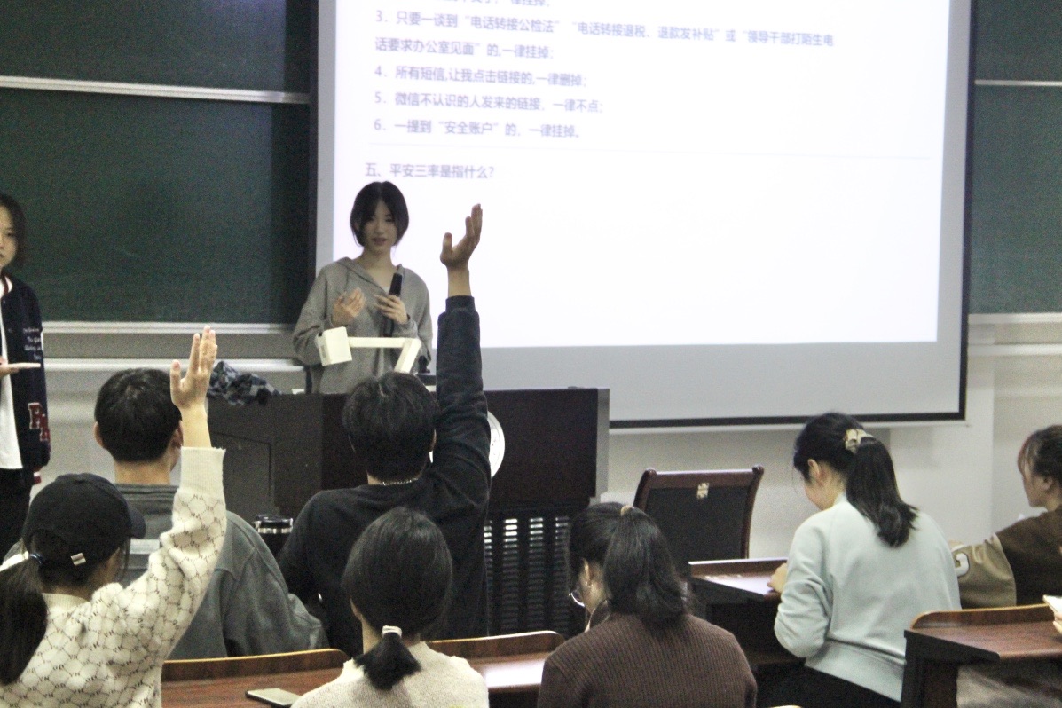 本次活动不仅让学院学生意识到电信诈骗无时不有、无处不在的严峻现实,还让同学们了解了更多防范电信诈骗的知识。希望在接下来的学习生活中,同学们能提高警戒性,共同遏制电信诈骗,为平安校园创建助力。