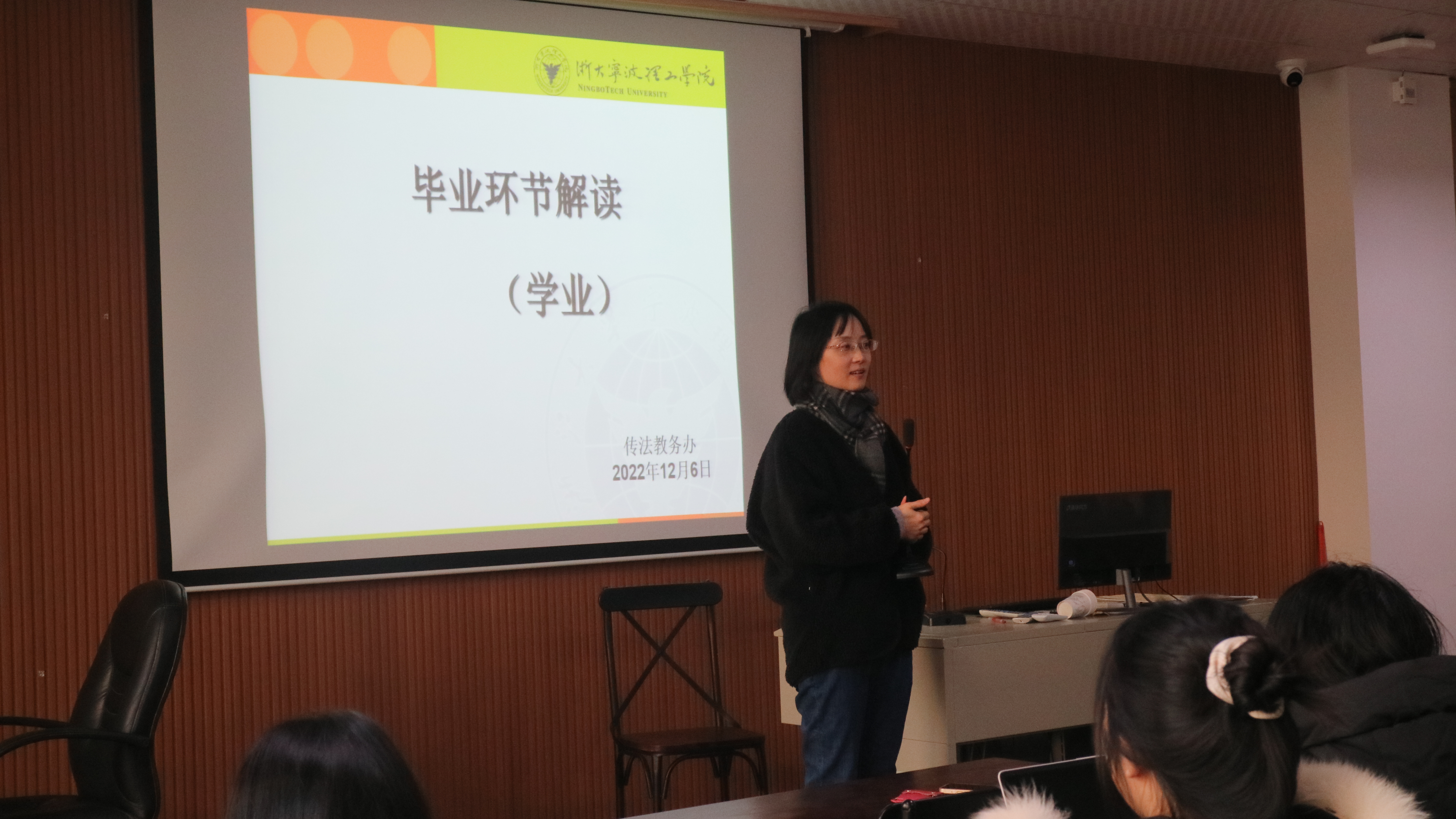 奚捷捷根据2023届就业形势,结合去年就业情况,给同学们介绍了就业相关的具体资讯,包括就业协议网签申请流程、宁波市就业政策、学院就业月安排等,使同学们的就业规划更加全面、具体。