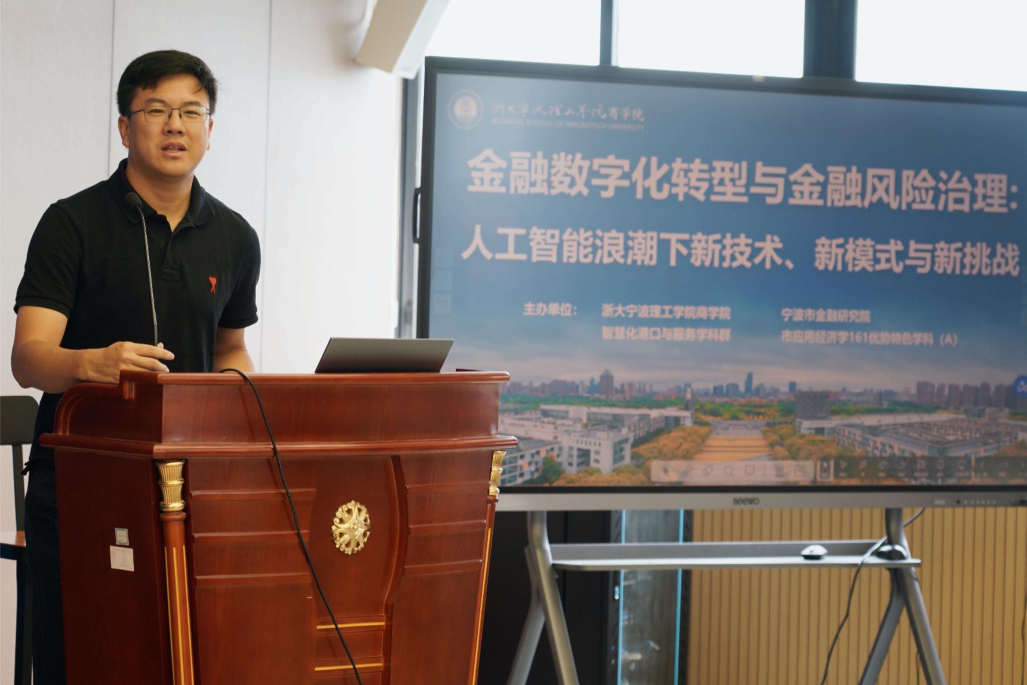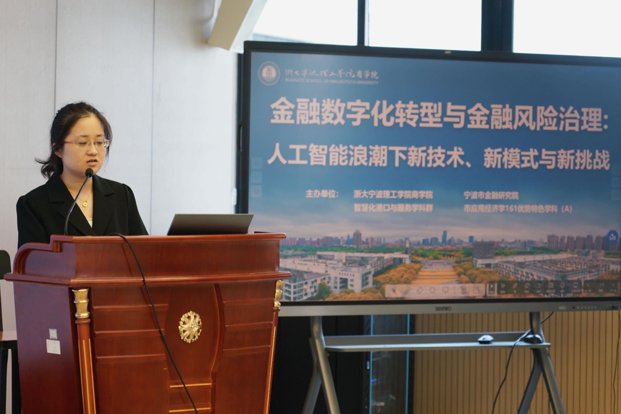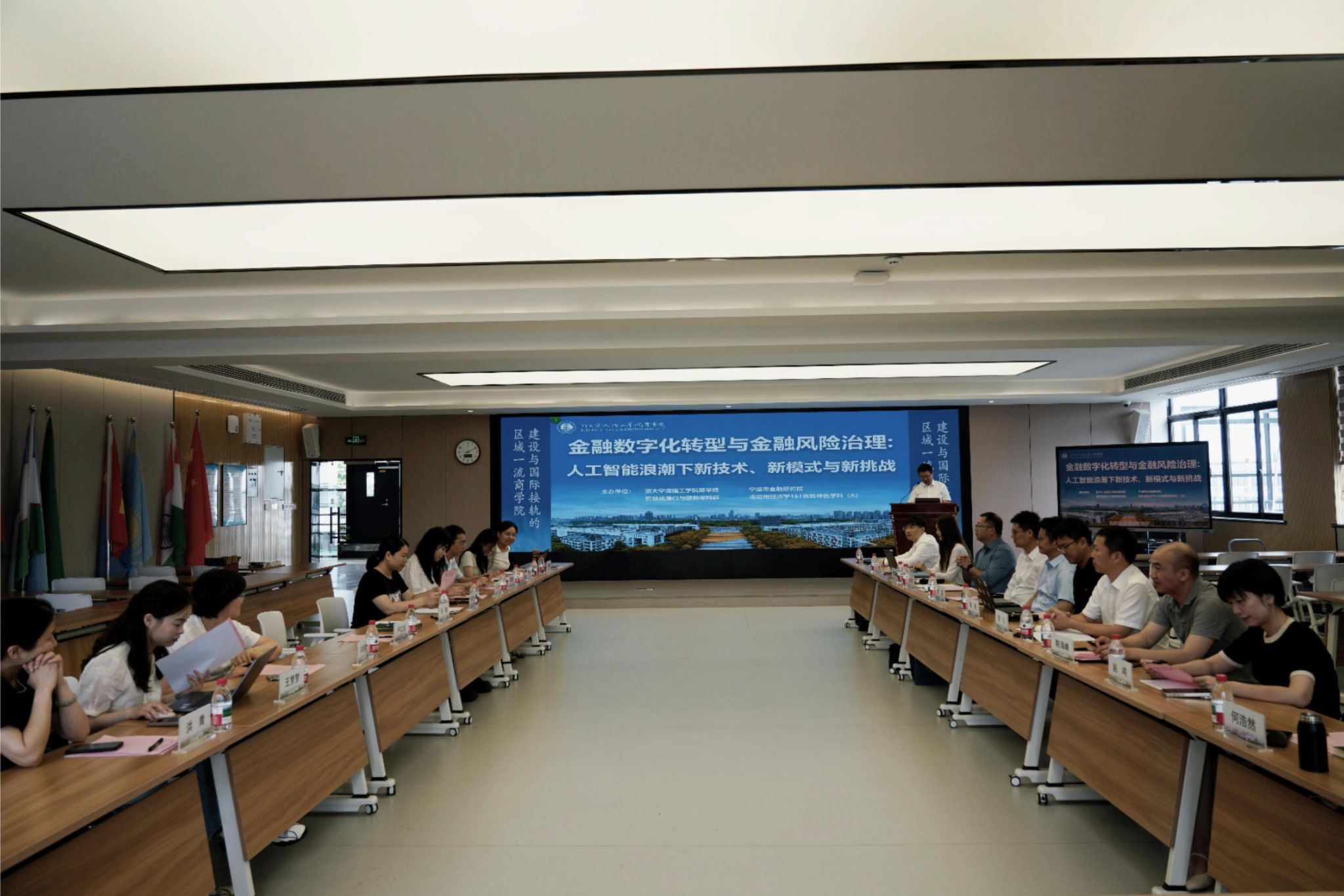 2025年6月18日上午,由浙大宁波理工学院商学院、智慧化港口与服务学科群、应用经济学宁波市161优势特色学科(A)与宁波市金融研究院联合主办的“金融数字化转型与金融风险治理:人工智能浪潮下的新技术、新模式与新挑战”研讨会,在商学院SC412数字金融实验室成功举行。
