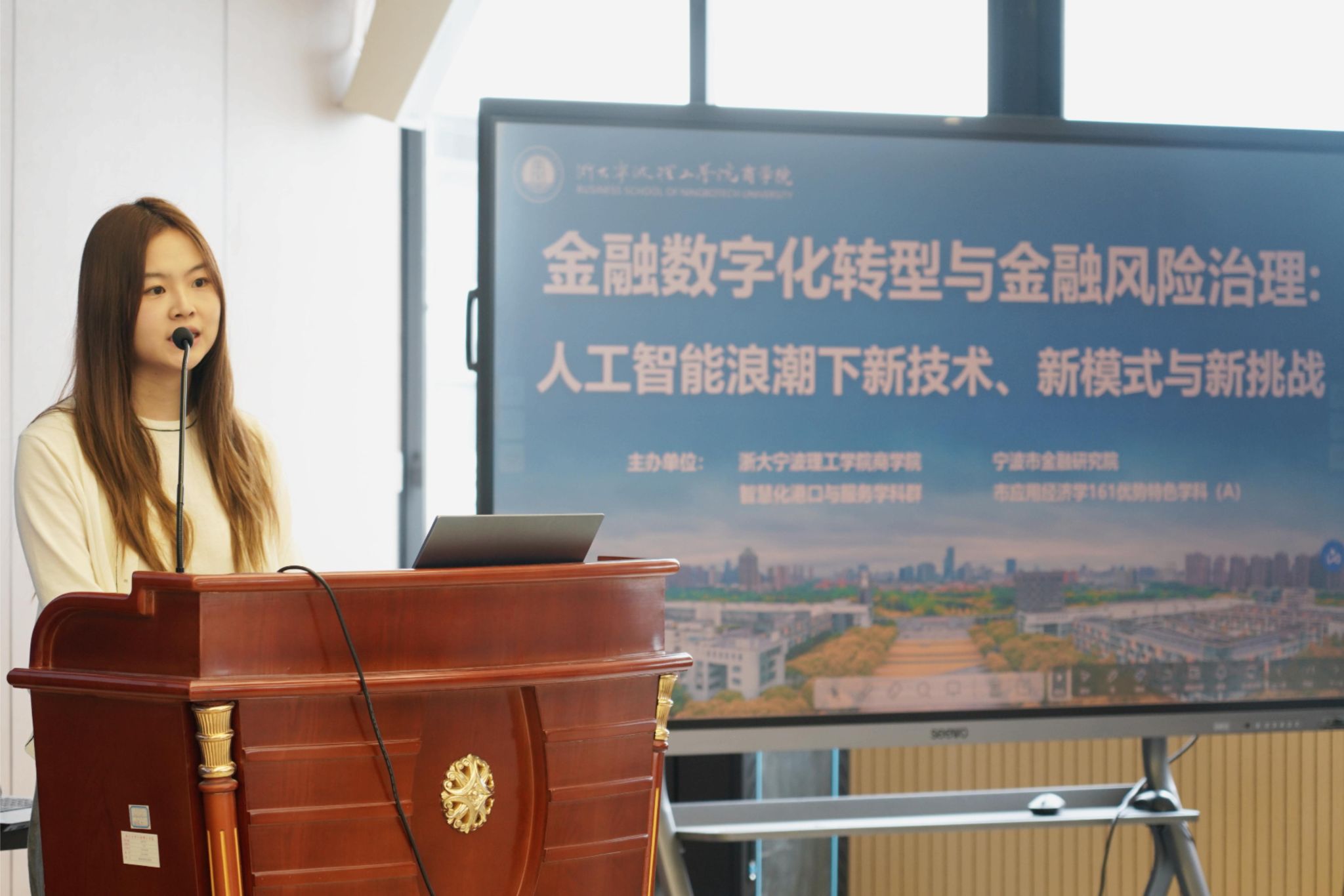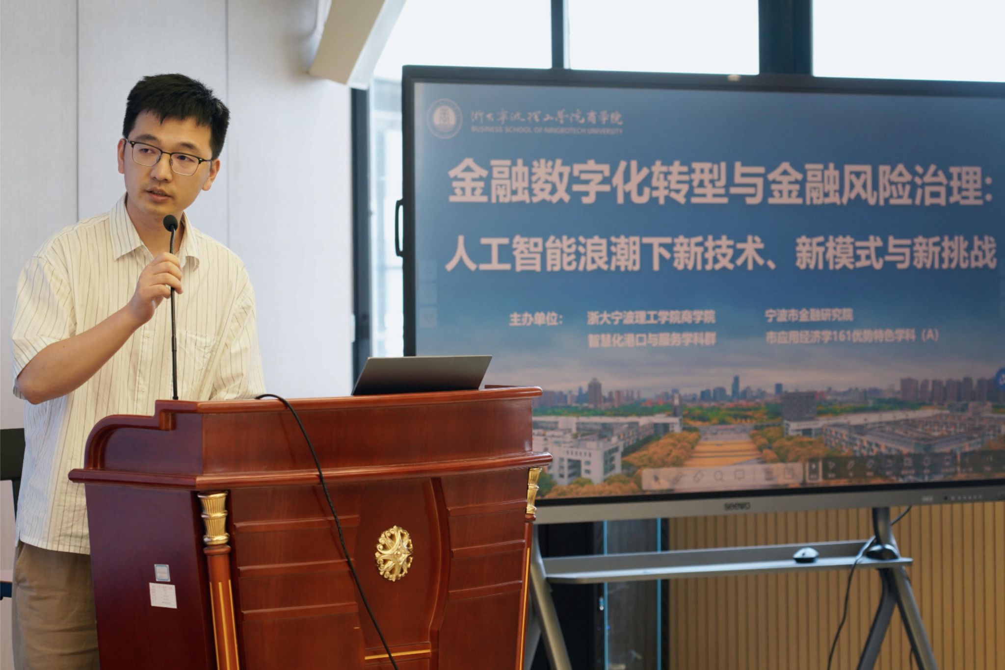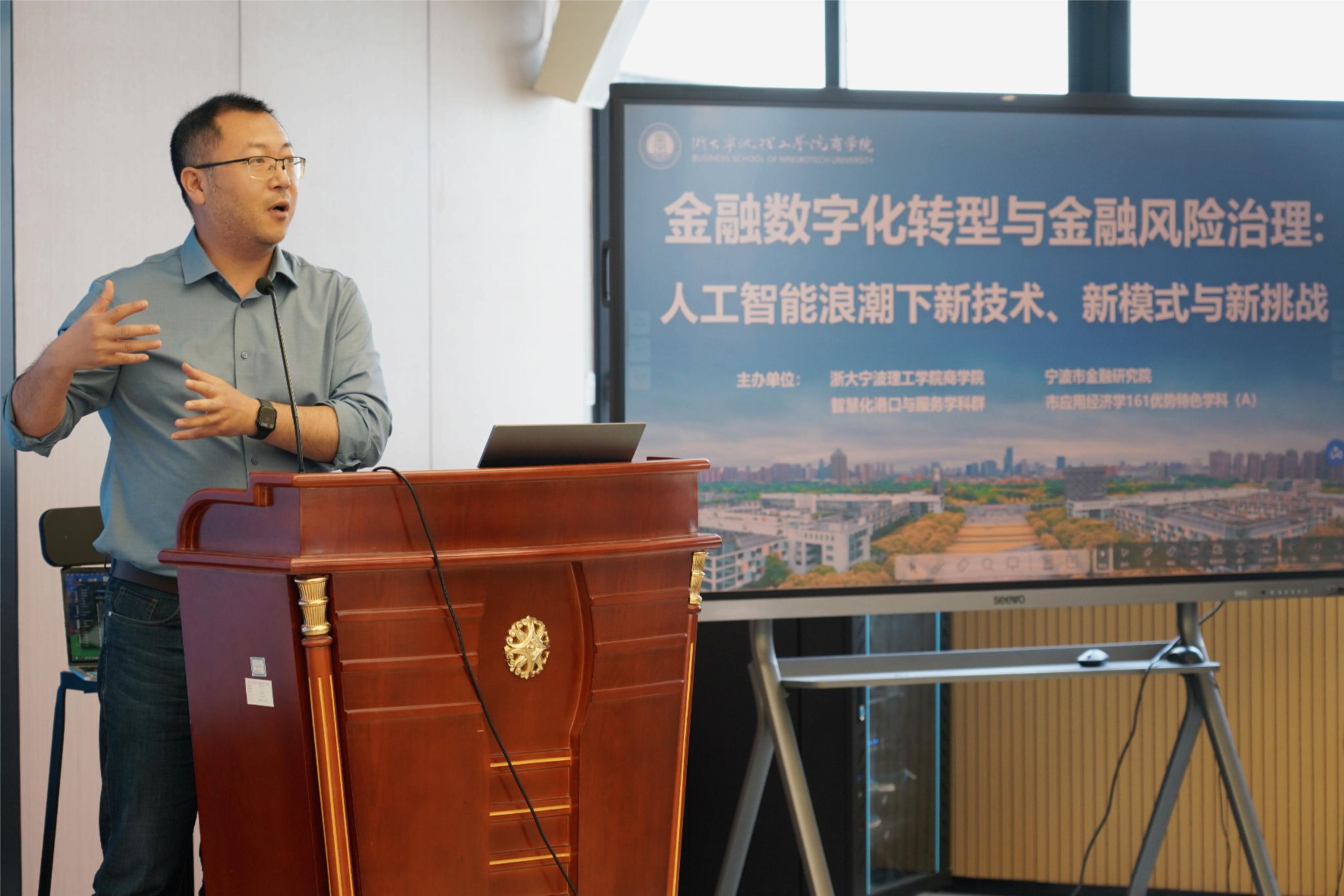 2025年6月18日上午,由浙大宁波理工学院商学院、智慧化港口与服务学科群、应用经济学宁波市161优势特色学科(A)与宁波市金融研究院联合主办的“金融数字化转型与金融风险治理:人工智能浪潮下的新技术、新模式与新挑战”研讨会,在商学院SC412数字金融实验室成功举行。